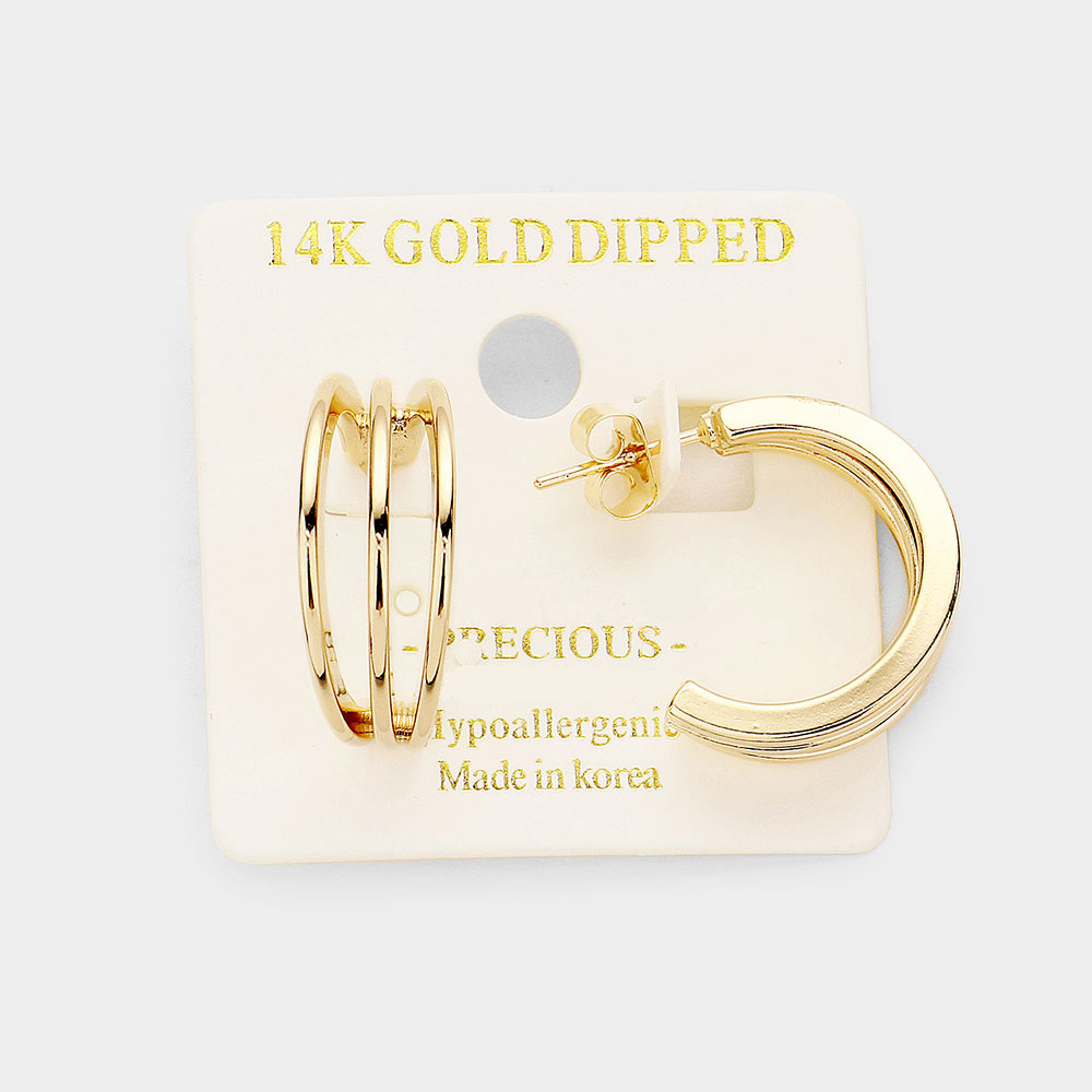 14K Gold Dipped Triple Layered Metal Hypoallergenic Half Hoop Earrings