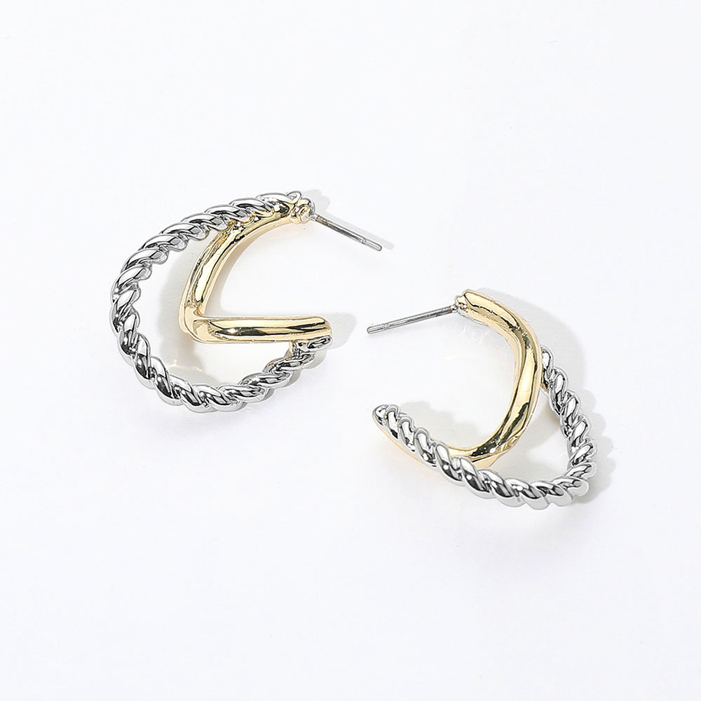 Details • Size : 0.8" X 1.25" • Post Back • Stylish open hoop earrings featuring a mixed metal twist design with chain detailing. Lightweight and bold—perfect for everyday glam or evening wear. • Gold Dipped