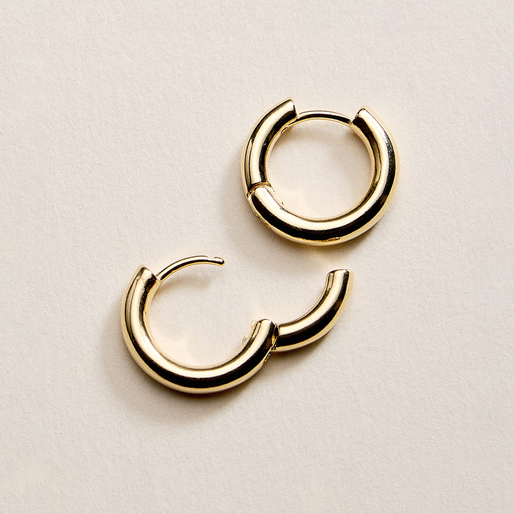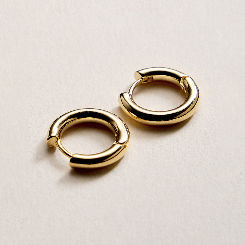 Details • Size : 0.6" X 0.6" • Huggie Back • Timeless mini hoop earrings designed with a smooth rounded silhouette for a clean, polished look. Their compact size makes them perfect for daily wear, stacking with other earrings, or minimalist styling. A versatile essential that transitions effortlessly from casual outfits to refined looks, ideal for everyday merchandising and gifting collections. • Gold Filled • Hypoallergenic • Lead and Nickel Compliant • Made In Brazil