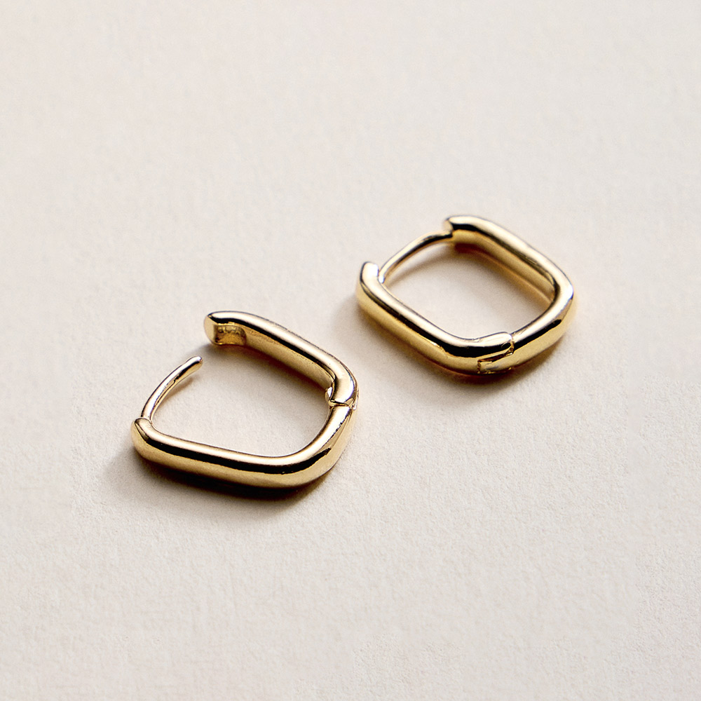 • Sleek rectangular huggie earrings designed for a clean, modern look with subtle structure. Compact and lightweight, they offer easy wear and a polished finish that pairs effortlessly with casual or refined outfits, perfect for daily styling, layering, or a minimalist jewelry collection.