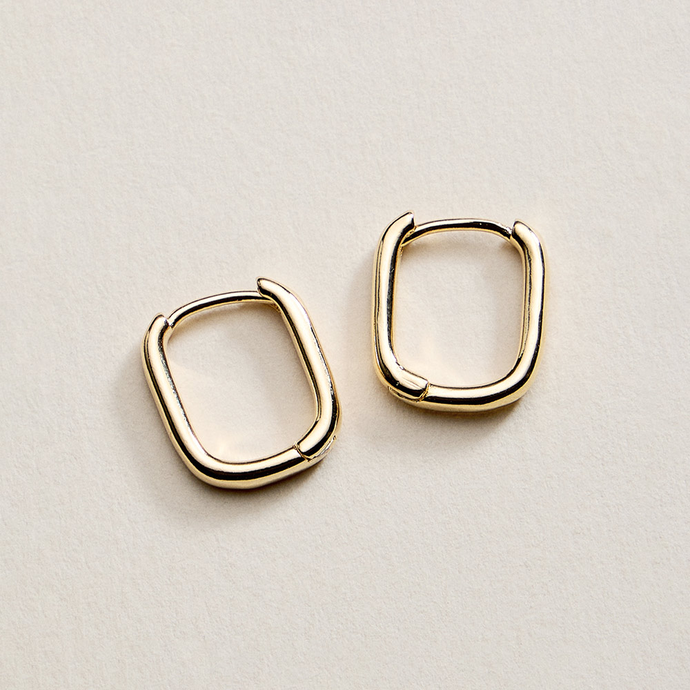 18K Gold Filled Minimal Rectangular Huggie Hoop Earrings