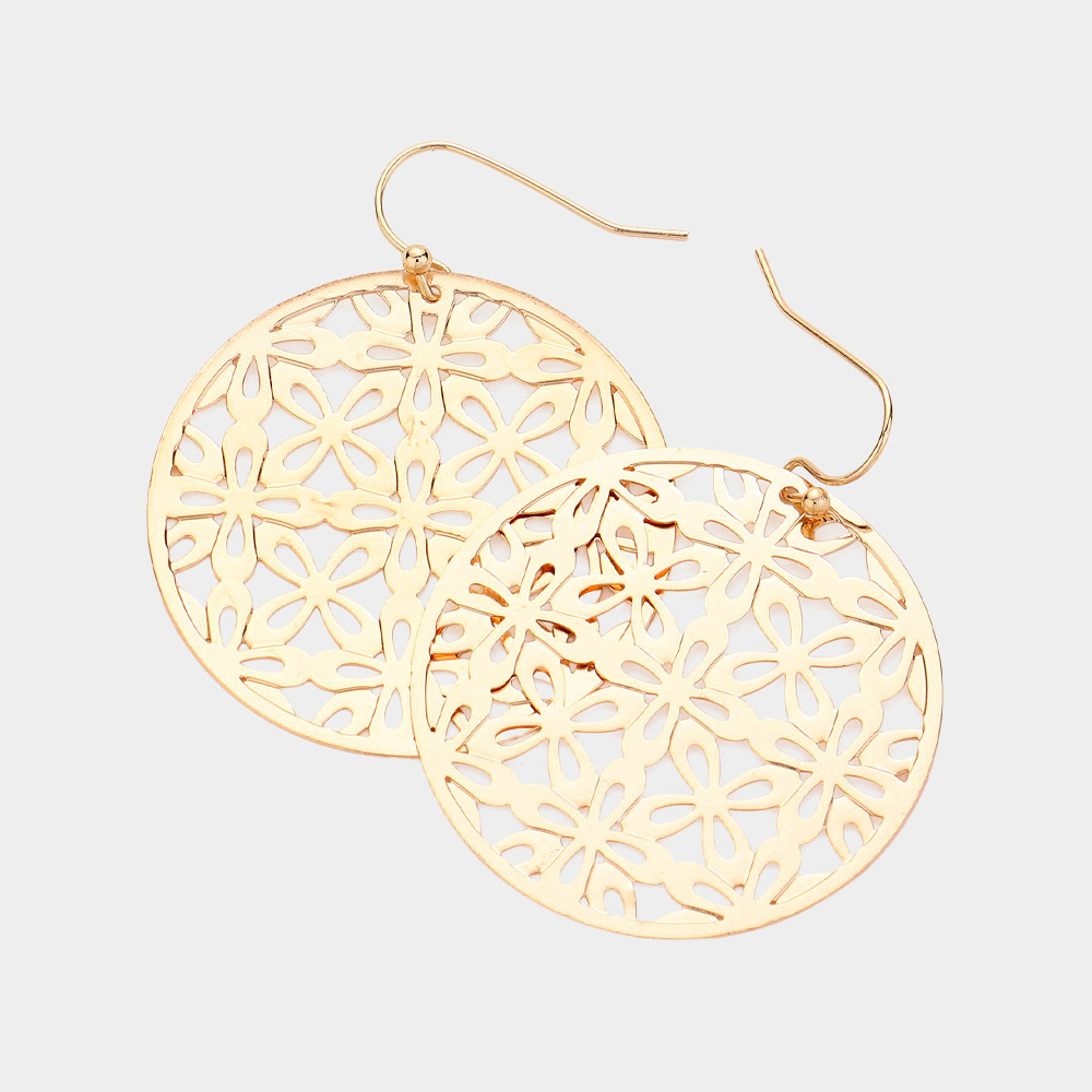 Abstract Pattern Circle Metal Filigree Dangle Earrings