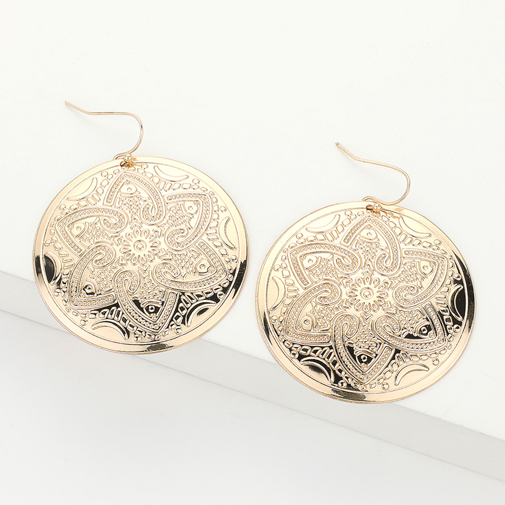 Abstract Pattern Engraved Medallion Dangle Earrings