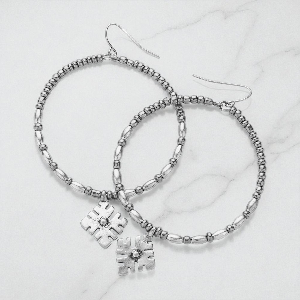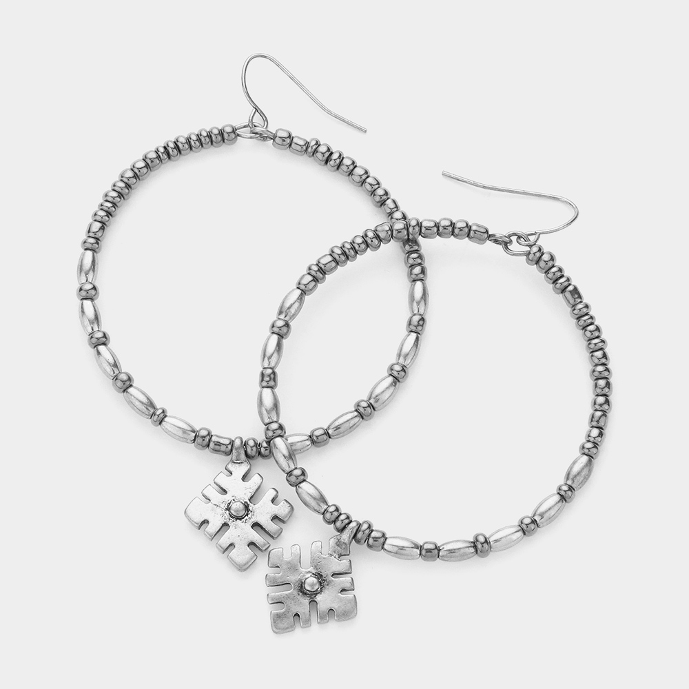 Natural Stone Accented Flower Burnished Metal Stretch Bracelet