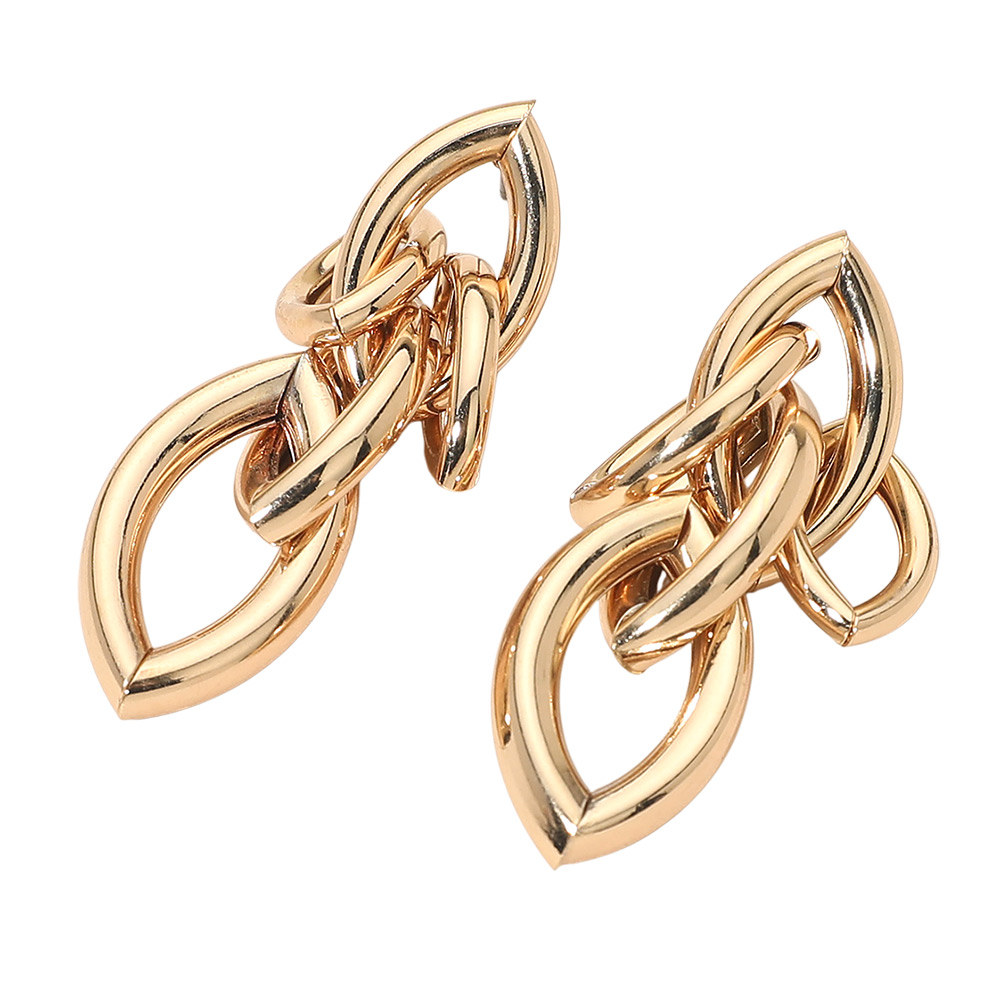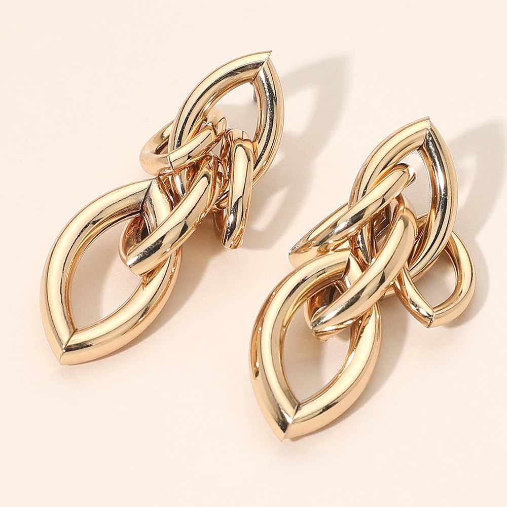 Details • Size : 0.7" X 2.25" • Post Back • Bold interlocking link statement earrings designed with sculptural movement and a polished finish. This modern silhouette delivers eye-catching dimension while remaining wearable for everyday styling, gifting, and boutique assortments seeking elevated, trend-forward accessories with strong visual impact. • Lead and Nickel Compliant