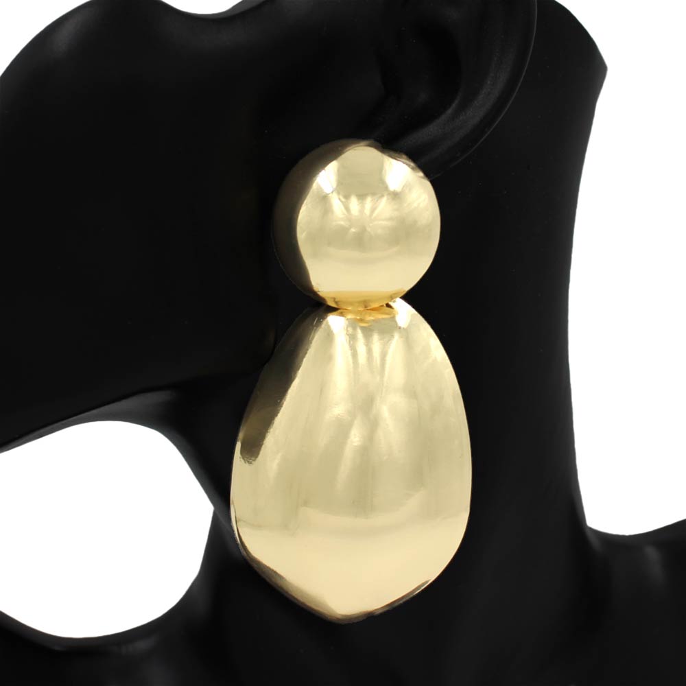 Details • Size : 1.75" X 3.5" • Post Back • Bold statement stud earring featuring a sculptural drop silhouette with an organic shape. Designed to add dramatic impact and modern elegance to any look, this eye-catching piece is perfect for boutique assortments, special occasions, and standout styling. • Lead and Nickel Compliant