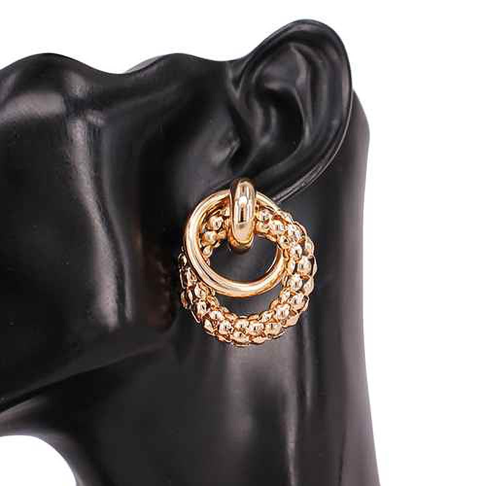 Bold Textured Metal Interlinked Hoop Drop Earrings