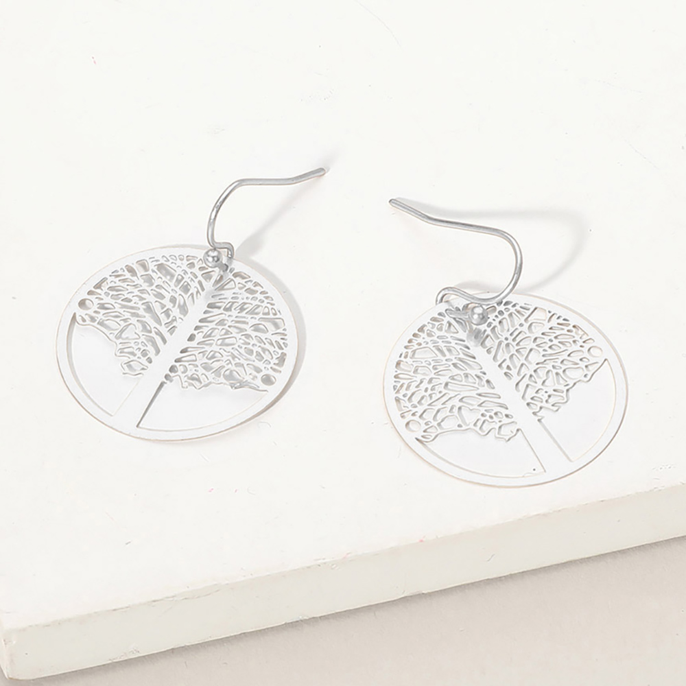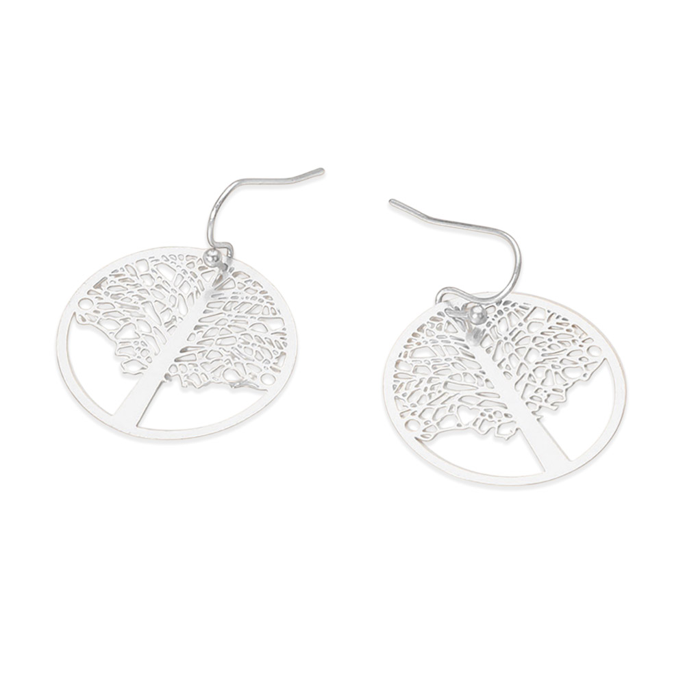 Brass Matte Metal Tree of Life Filigree Dangle Earrings