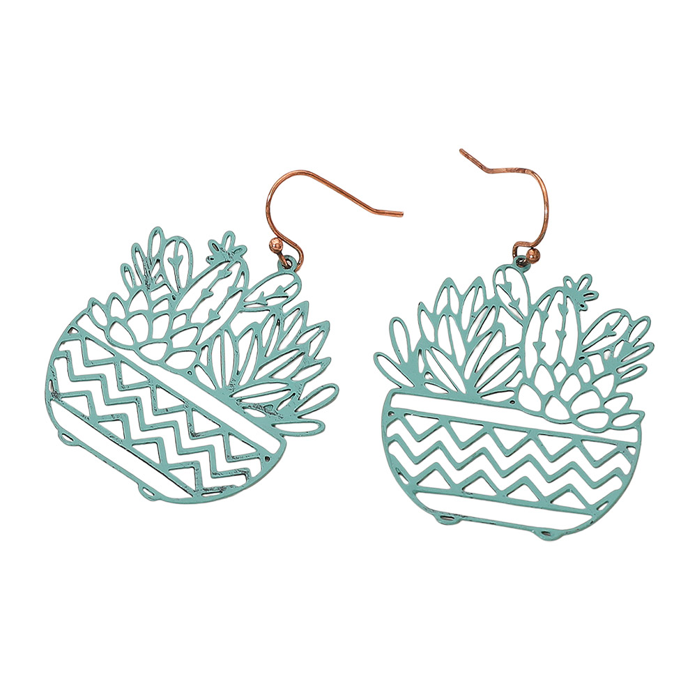 Brass Metal Botanical Planter Cutout Dangle Earrings