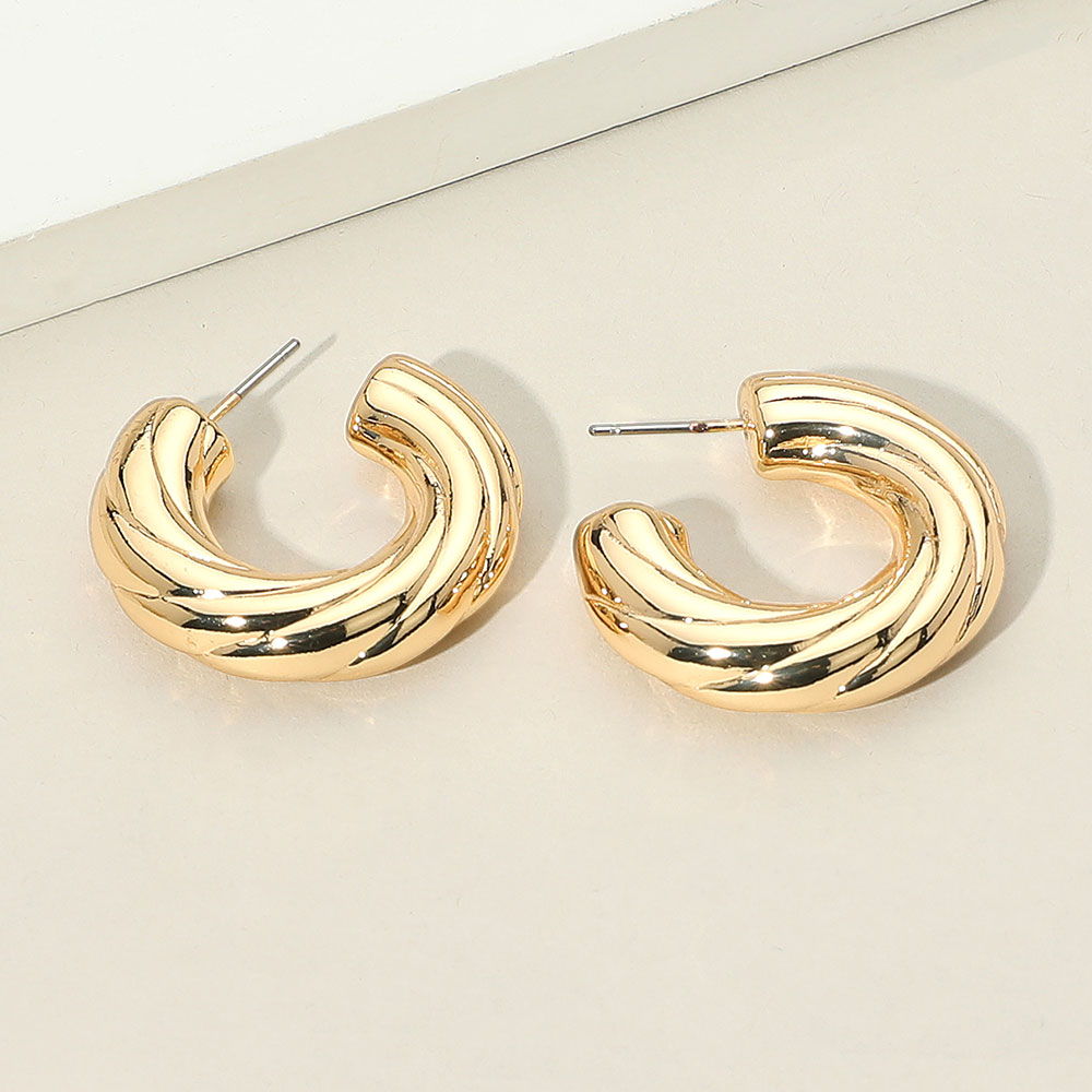 14K Gold Dipped CZ Stone Paved Split Hoop Earrings