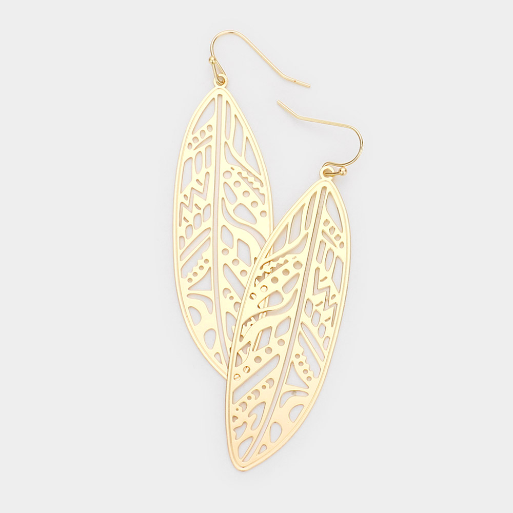 Brass Metal Flower Filigree Teardrop Dangle Earrings