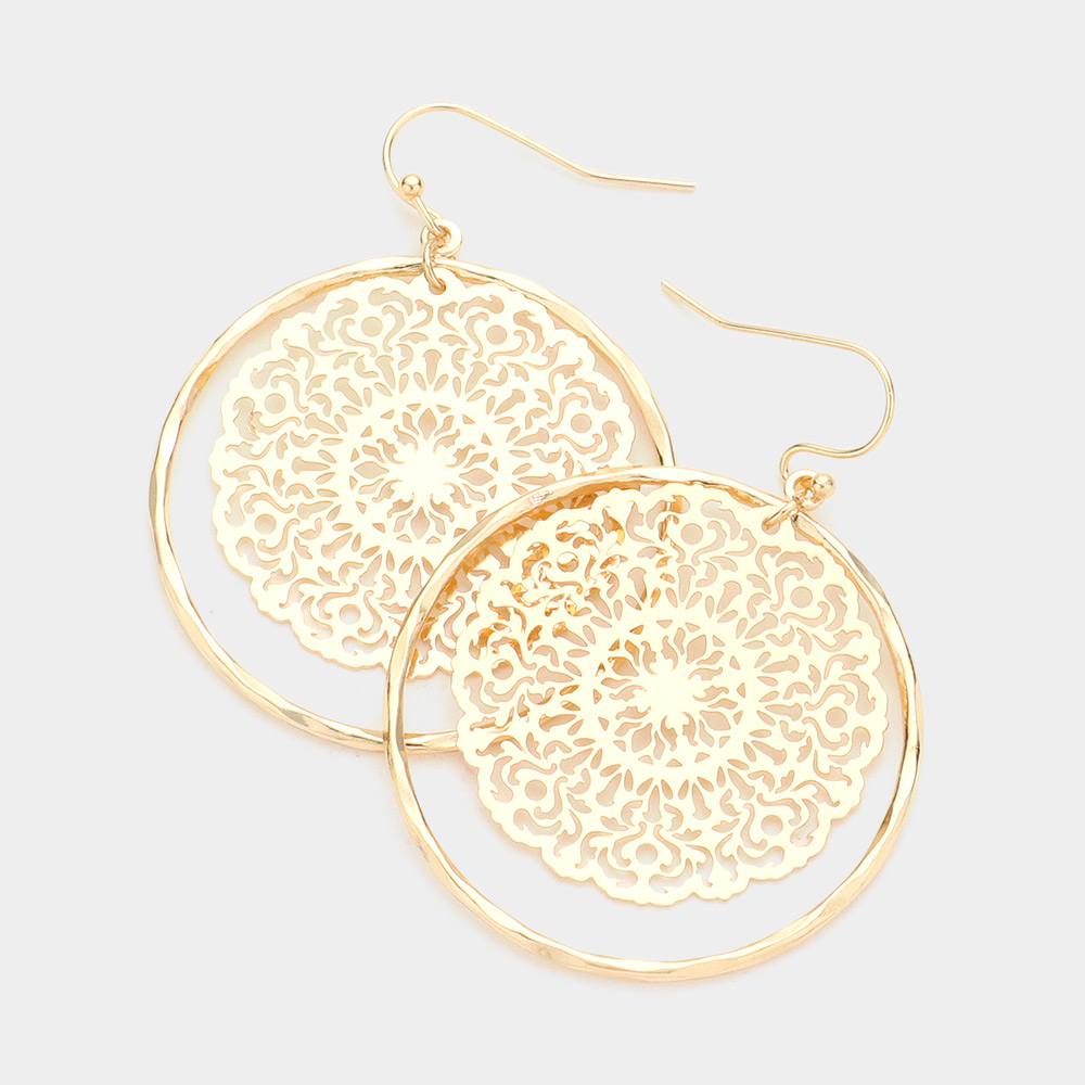 Abstract Pattern Circle Metal Filigree Dangle Earrings