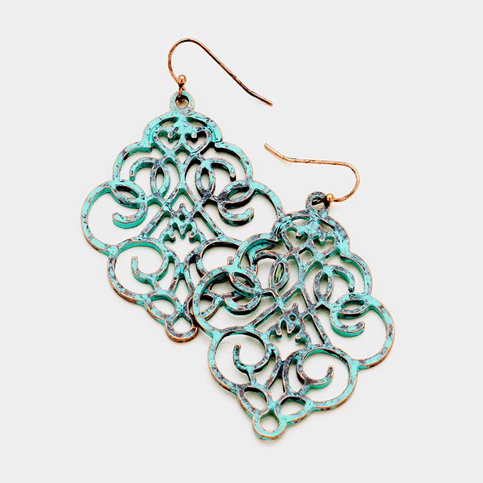 Stitched Faux Leather Layered Metal Leaf Dangle Earrings