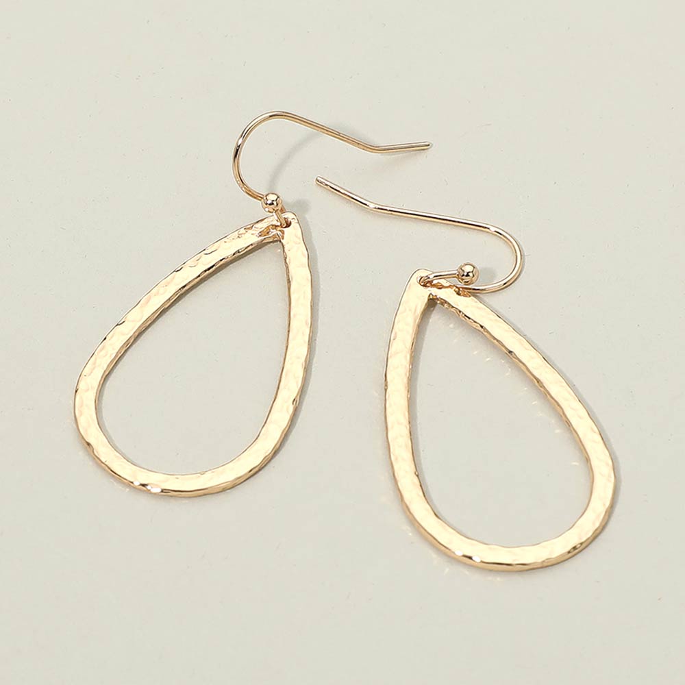 • Elegant open teardrop drop earrings with a softly hammered texture that catches light beautifully with every movement. Designed for effortless styling, these lightweight earrings add a refined statement to casual looks, office wear, or evening outfits while maintaining a clean, modern silhouette.