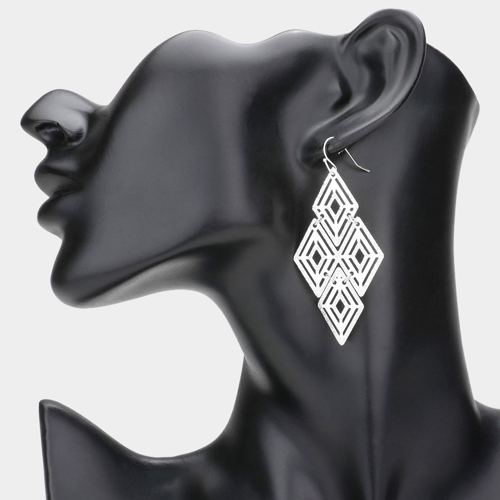 Faux Leather Wavy Marquise Plate Dangle Earrings