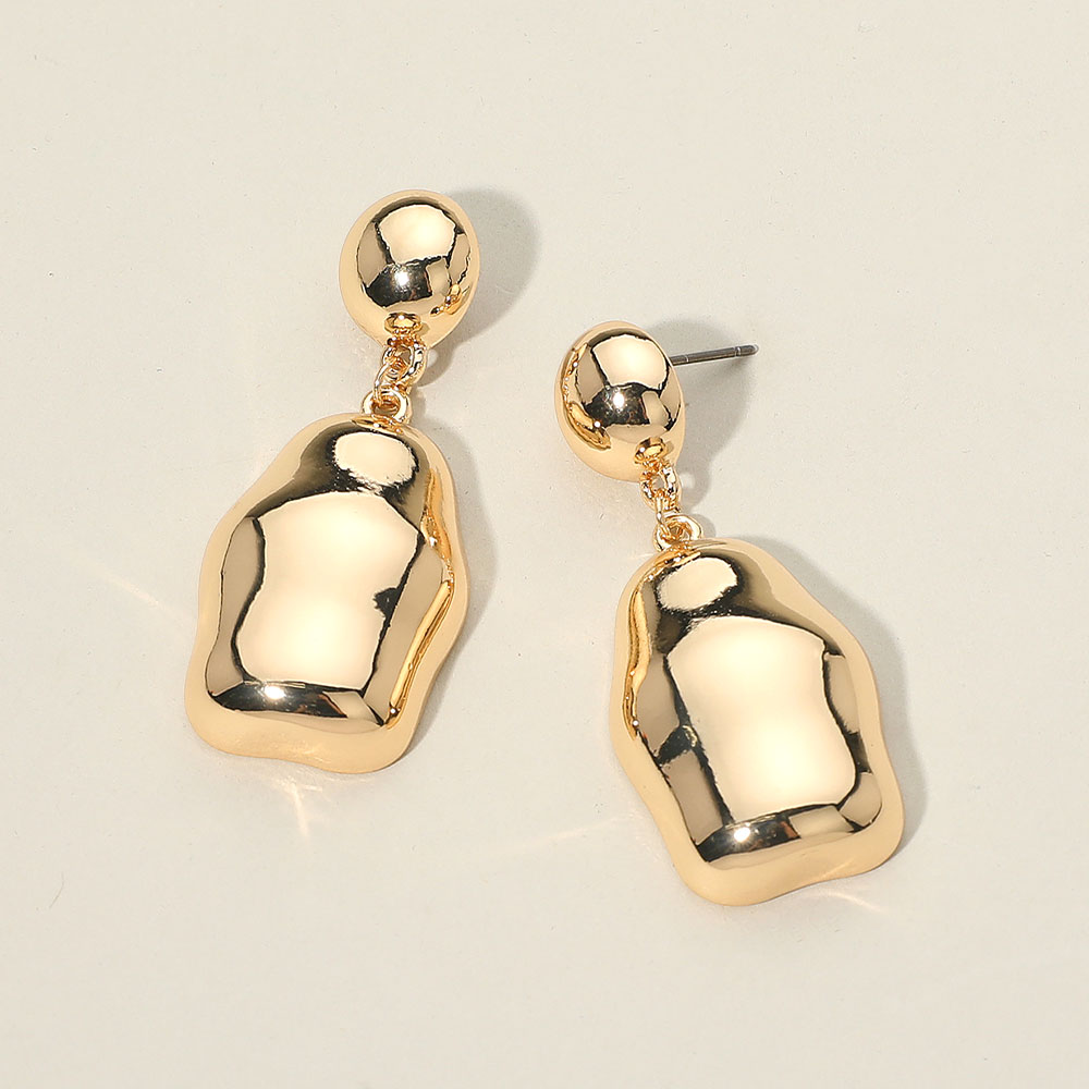 • Make a bold statement with these abstract drop stud earrings featuring a smooth, reflective finish and organic silhouette. Their modern shape adds a unique touch to any outfit, effortlessly transitioning from casual looks to elevated styles with artistic flair and contemporary appeal.
