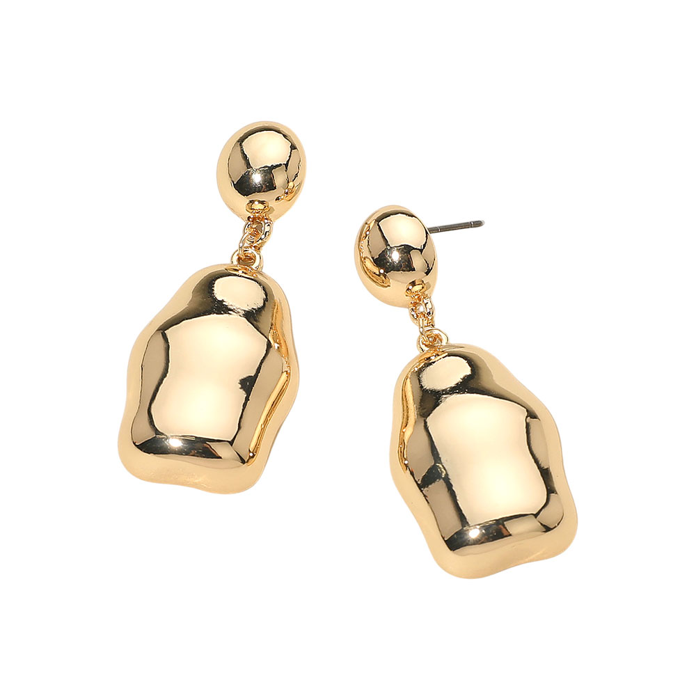 Gold Dipped Abstract Pebble Drop Dangle Earrings