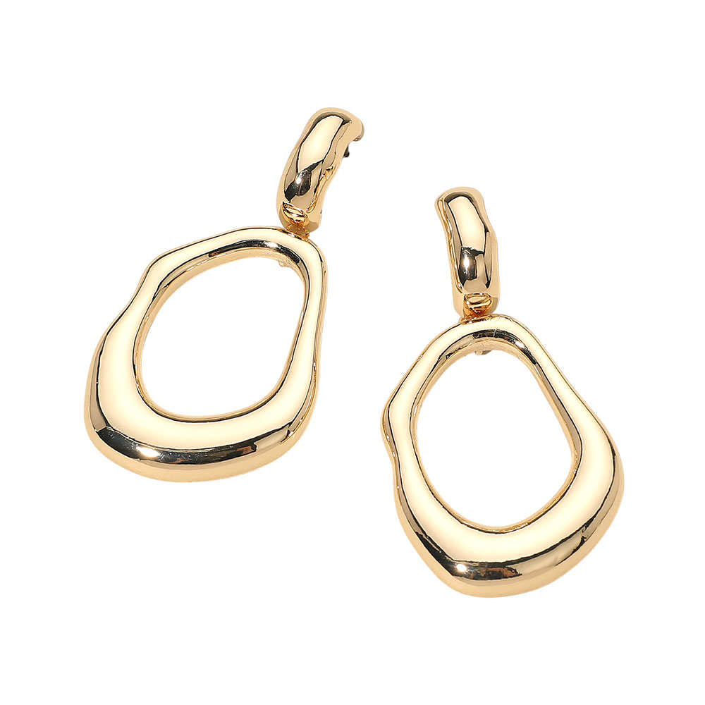 Details • Size : 1.25" X 2.3" • Post Back • Elevate your style with these open abstract drop earrings crafted with smooth, fluid contours for a modern sculptural look. Their freeform silhouette brings artistic charm to everyday wear and statement outfits alike, offering an effortlessly chic accessory with a contemporary edge. • Lead and Nickel Compliant • Made In Korea • Gold Dipped