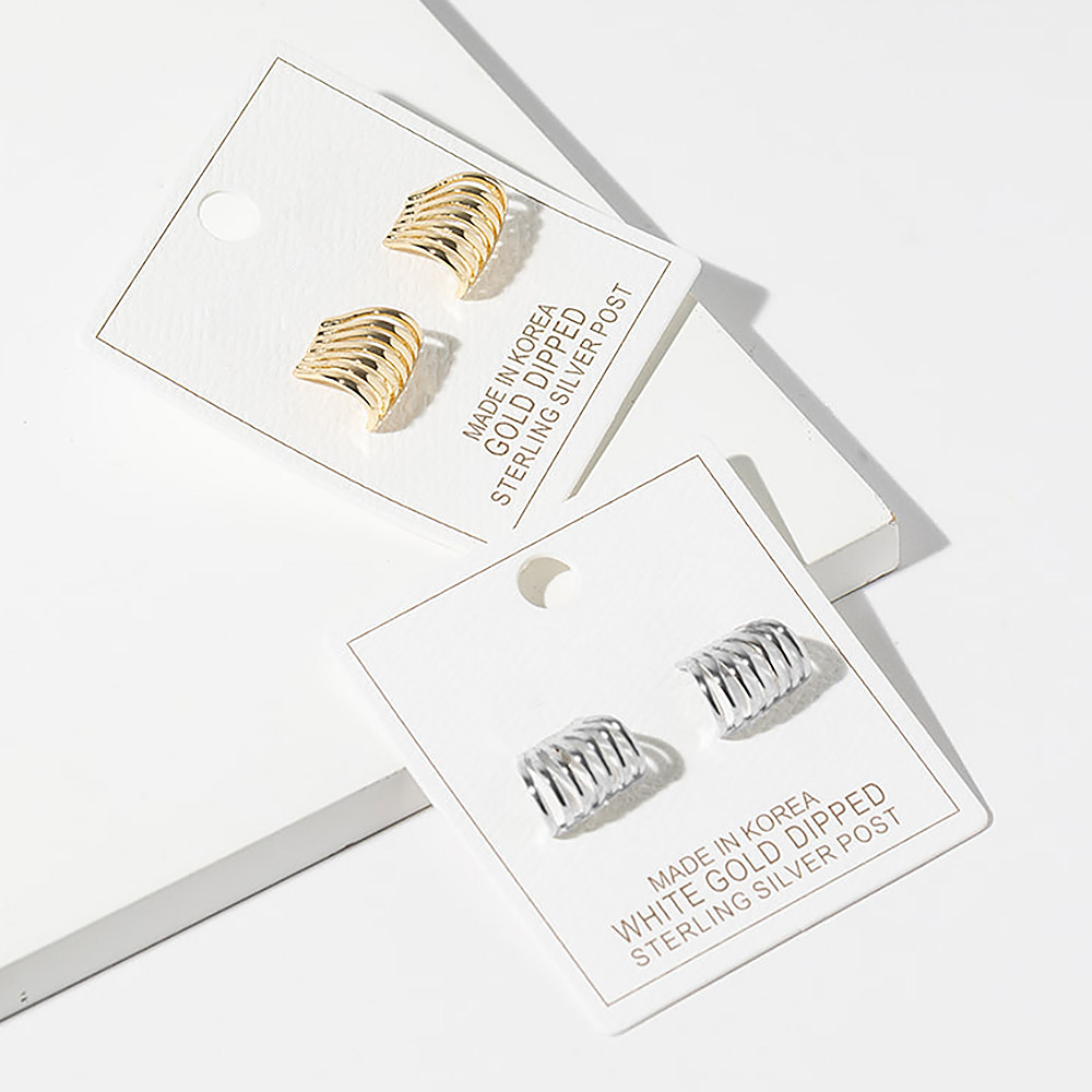 White Gold Dipped Ribbed Cuff Stud Earrings