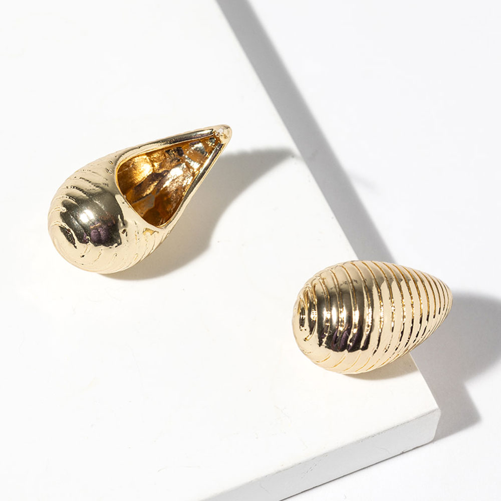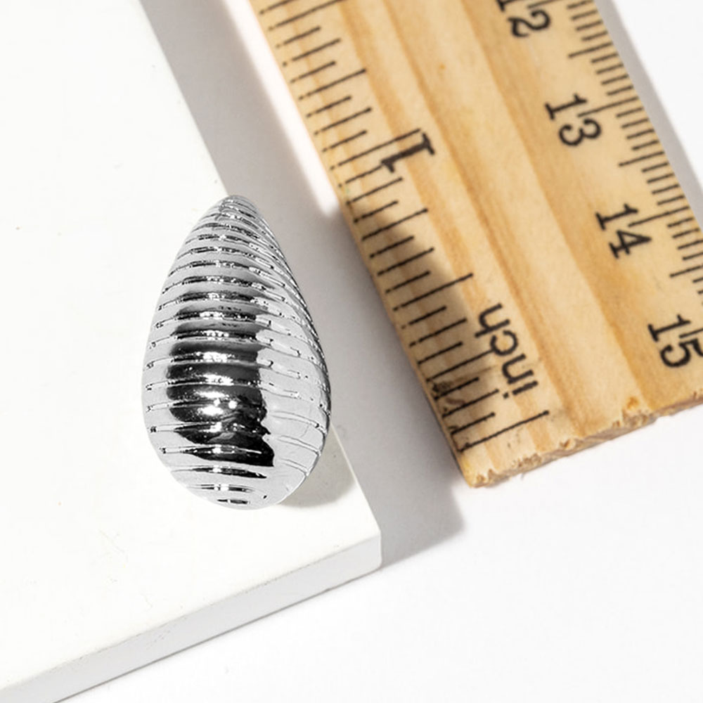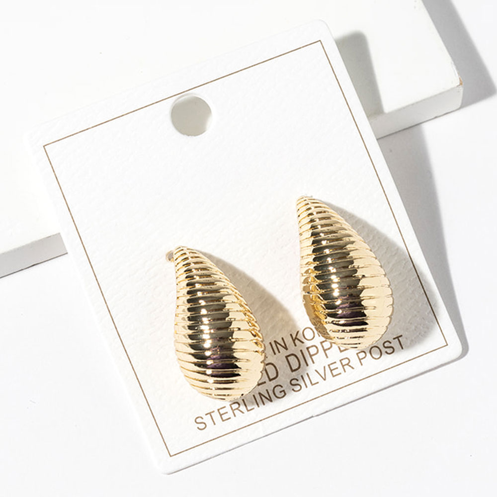 • Modern teardrop stud earrings featuring a sculpted ribbed texture for a sleek, dimensional look. Designed to reflect light beautifully, these studs offer a refined statement that transitions effortlessly from everyday wear to evening styling, making them a versatile addition to any accessory collection.