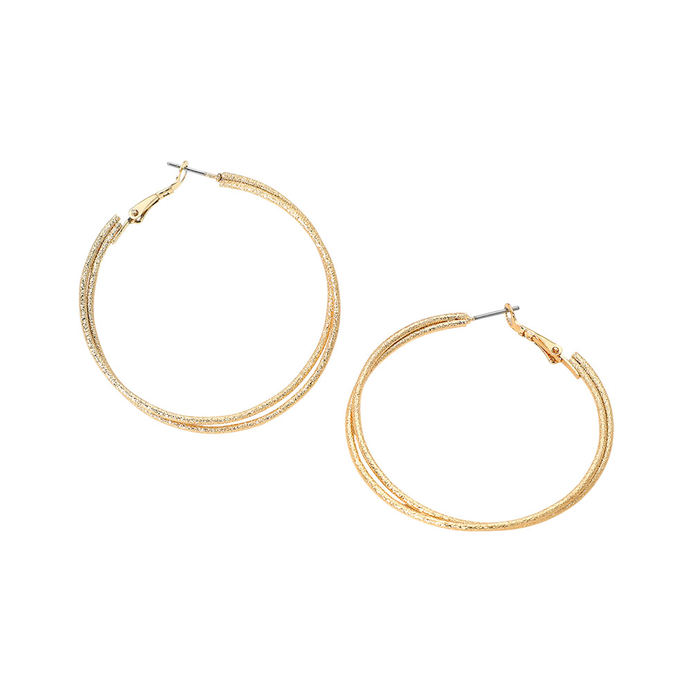 Details • Size : 2" X 2" • Omega Back • Timeless hoop earrings designed with a refined textured finish that adds subtle shine and dimension. Lightweight and easy to wear, this versatile silhouette pairs effortlessly with everyday outfits or elevated looks, making it a staple accessory for boutiques and curated jewelry collections year-round. • Lead and Nickel Compliant • Gold Dipped