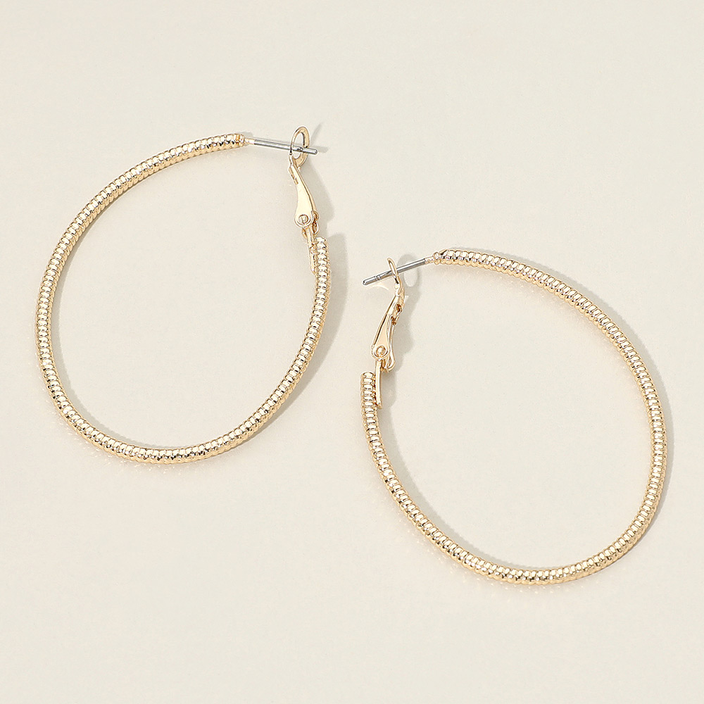 • Elegant slim hoop earrings featuring a refined textured finish and a lightweight silhouette for comfortable everyday wear. A versatile accessory that adds modern polish to casual outfits or enhances evening looks with a clean, minimal style.