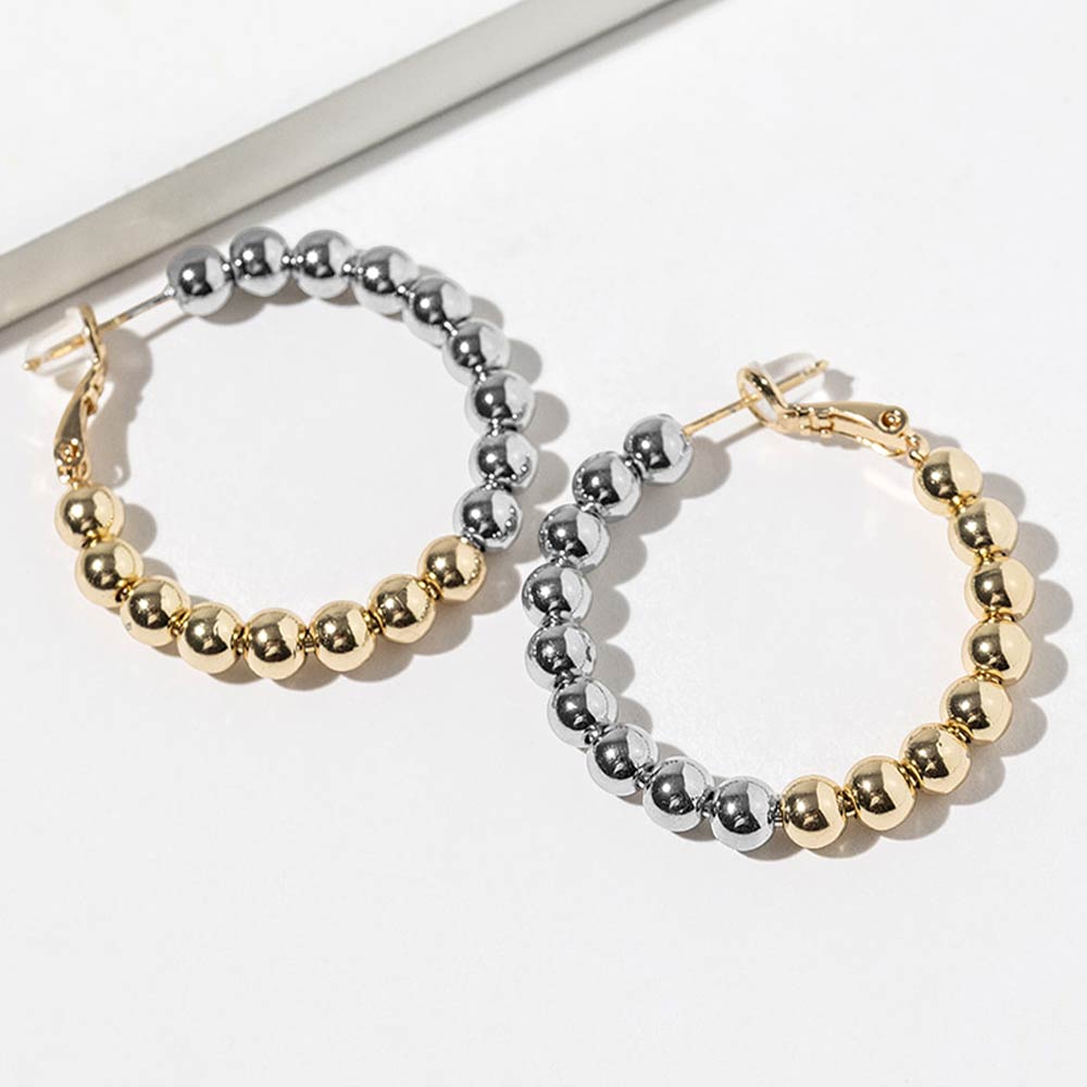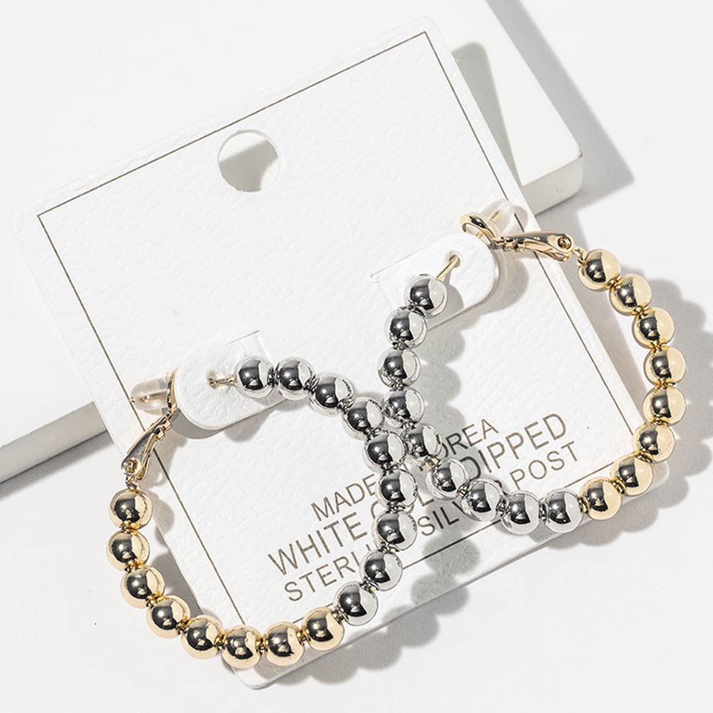 Details • Size : 1.4" X 1.4" • Omega Back • Stylish twisted hoop earrings designed with layered beaded detailing for a modern statement look. Lightweight yet eye-catching, these drop hoops add movement and texture to everyday outfits, workwear, or evening styles. A versatile accessory choice for trend-driven collections and boutique assortments. • Gold Dipped • Lead and Nickel Compliant • Made In Korea • Sterling Silver Post