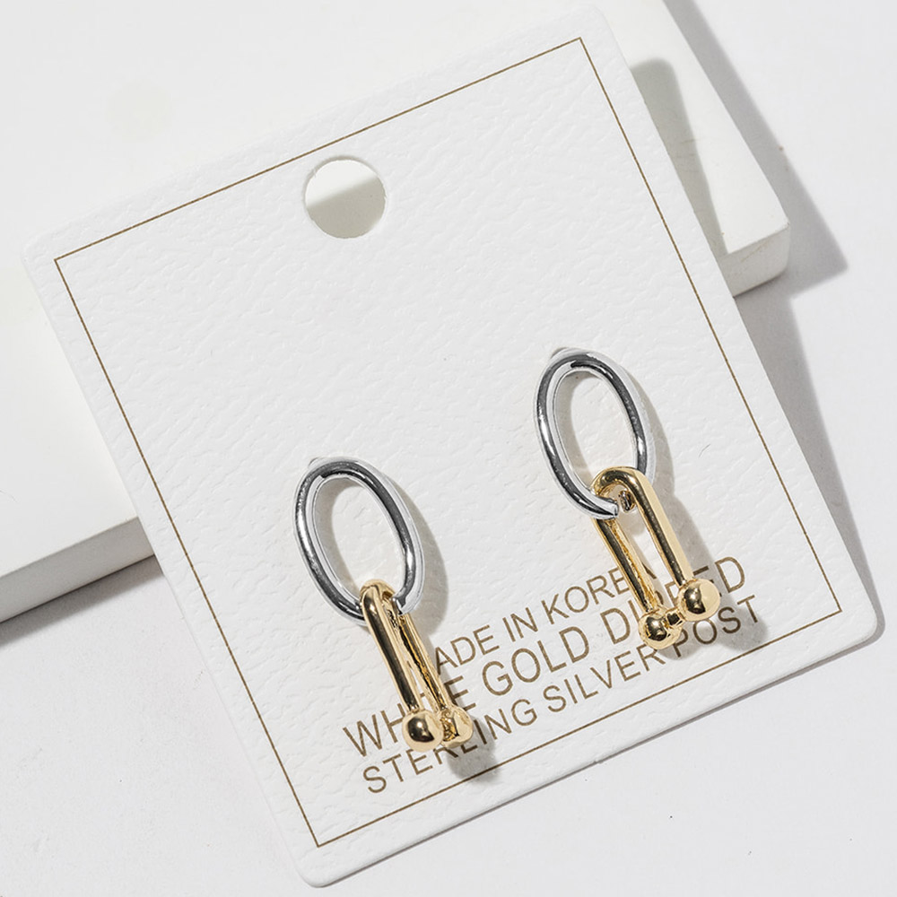 Details • Size : 0.3" X 1" • Sleek drop earrings featuring a clean linked bar design that delivers subtle movement and modern appeal. This minimalist silhouette pairs effortlessly with casual looks or polished outfits, making it a versatile choice for everyday wear, gifting displays, and contemporary boutique jewelry collections. • Lead and Nickel Compliant • Made In Korea • Gold Dipped • Sterling Silver Post