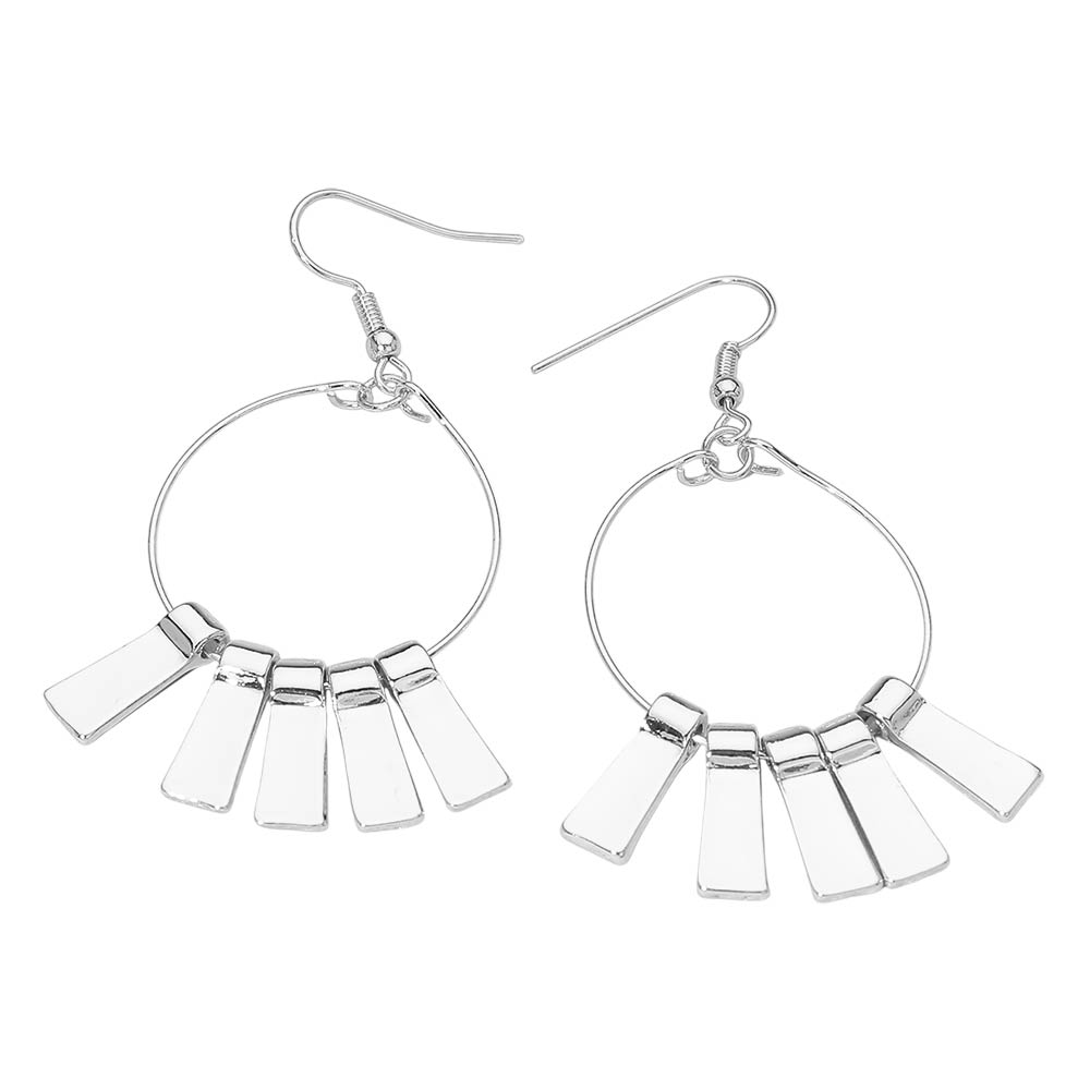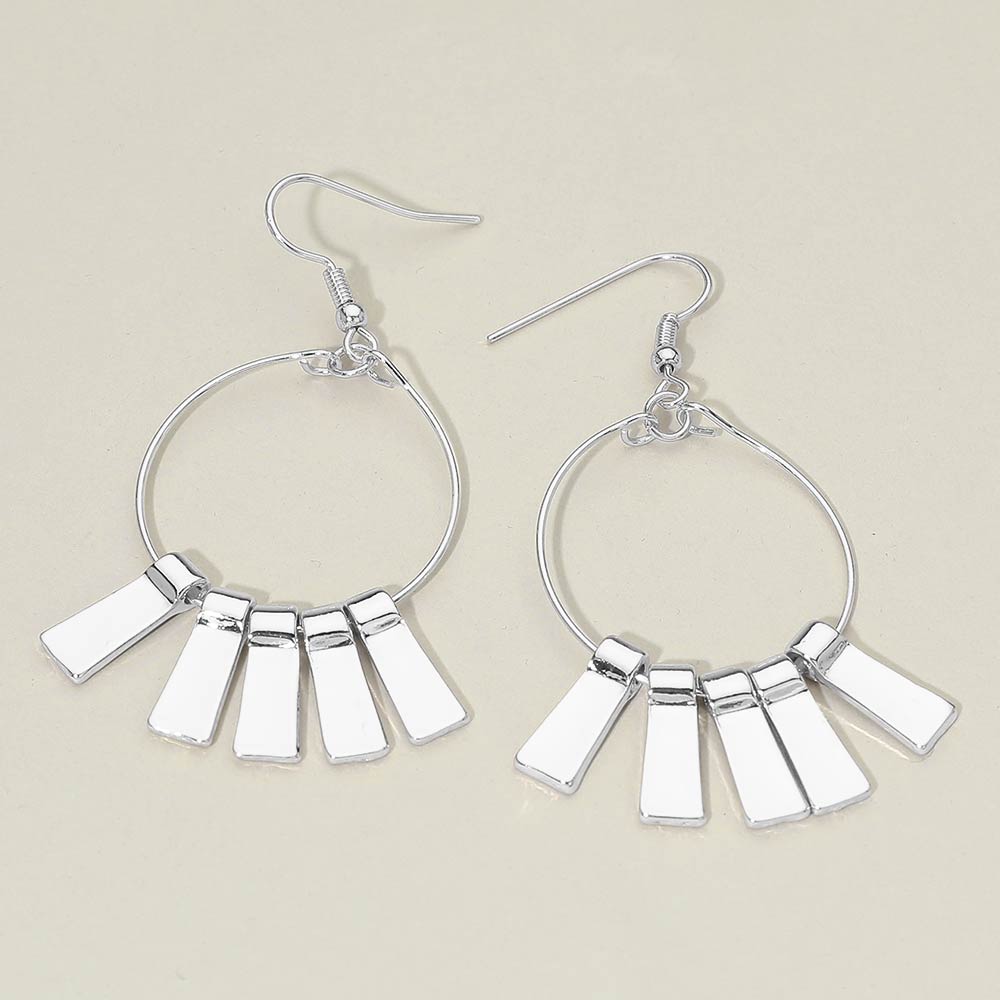 Details • Size : 1.25" X 2.4" • Fish Hook Back • Make a statement with these fringe bar hoop drop earrings featuring a circular frame accented by dangling bar details. Designed to add movement and visual interest, they bring a modern yet playful touch to everyday outfits or dressed-up looks. Lightweight and easy to wear, this design offers balance between bold shape and clean lines, making it ideal for trend-focused collections, gifting, and versatile styling across seasons. • Lead and Nickel Compliant