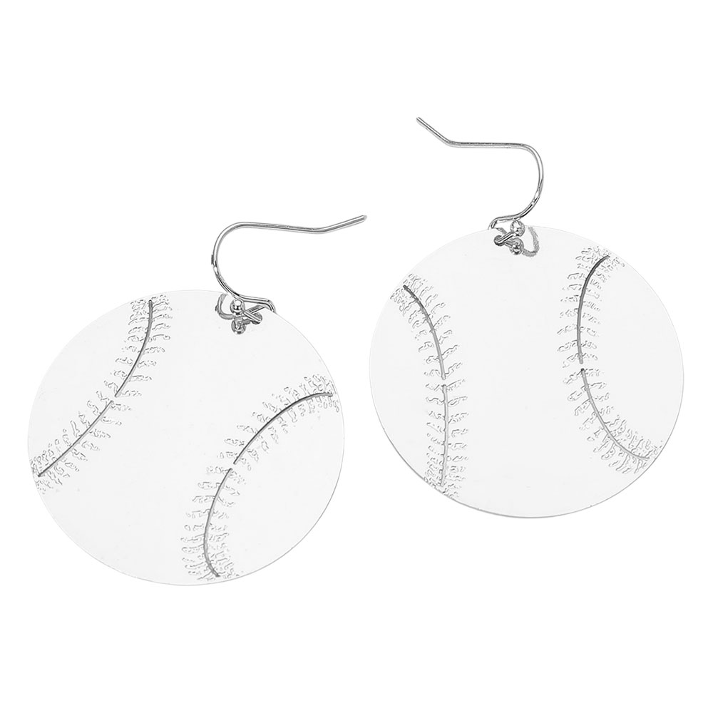 • Sporty round dangle earrings featuring an engraved baseball stitch pattern, perfect for gameday outfits and fan-inspired looks. Lightweight statement style adds fun sports flair to everyday wear or team events, making them an ideal accessory for baseball lovers.