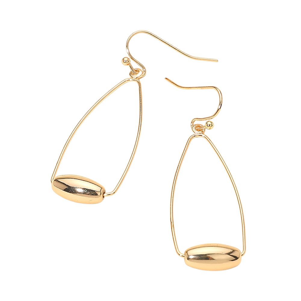 Metal Bead Accent Teardrop Wire Frame Drop Earrings Metal Bead Accent Teardrop Wire Frame Drop Earrings