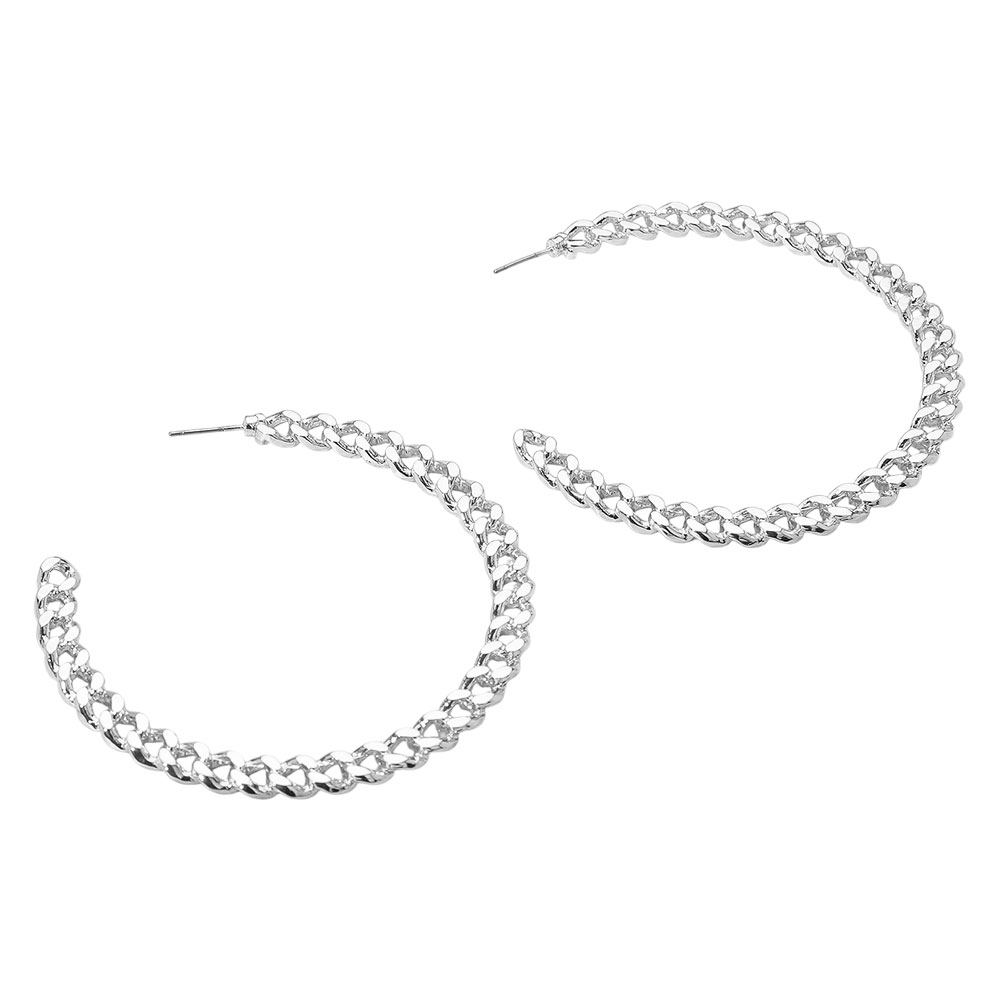 • Add bold elegance to your look with sleek chain hoop earrings. Featuring a polished chain-link design, these hoops offer modern style that transitions effortlessly from casual wear to evening outfits. A versatile accessory that delivers statement appeal and contemporary sophistication.