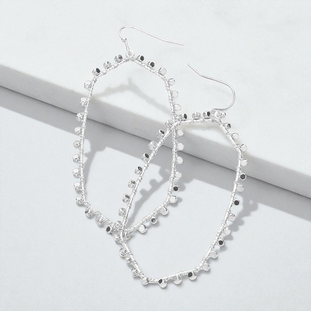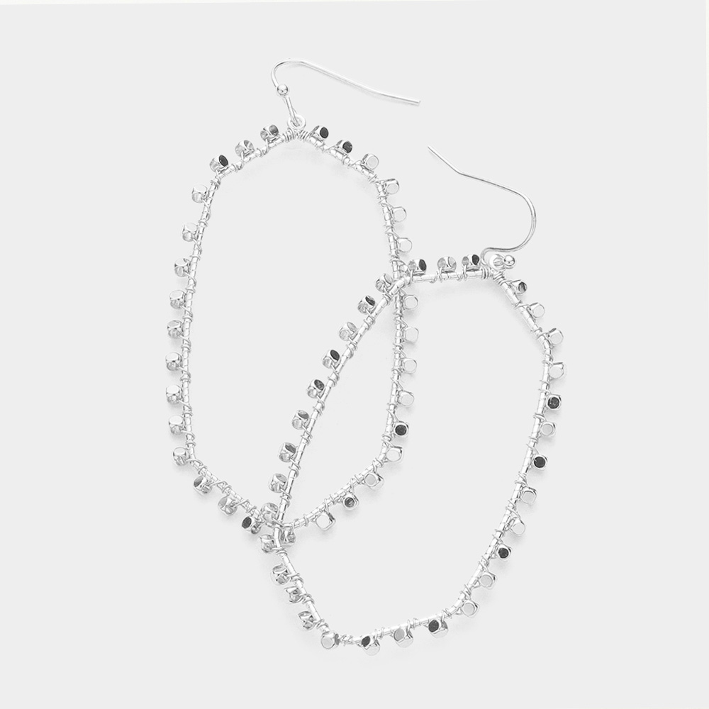 Faceted Bead Fringe Open Wire Teardrop Dangle Earrings