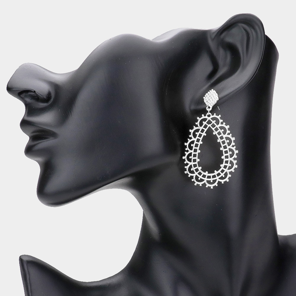 Metal Cutout Teardrop Dangle Earrings