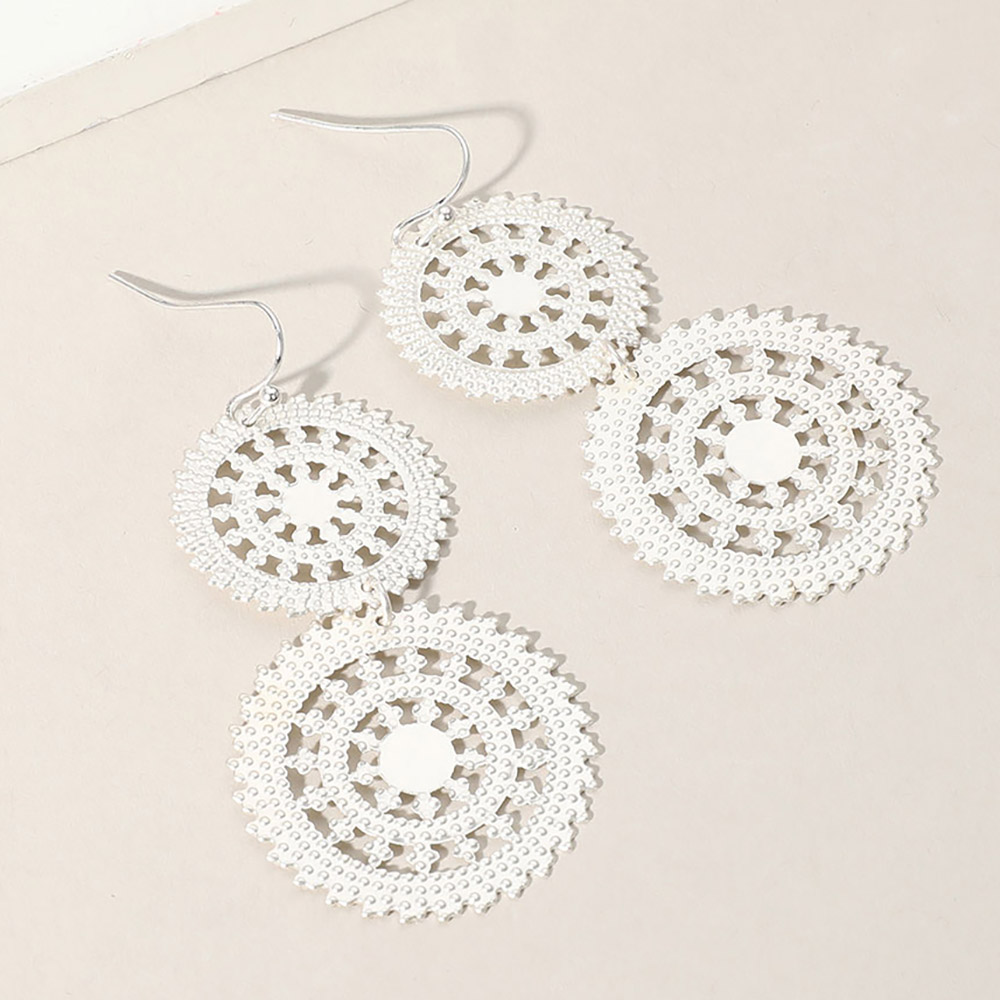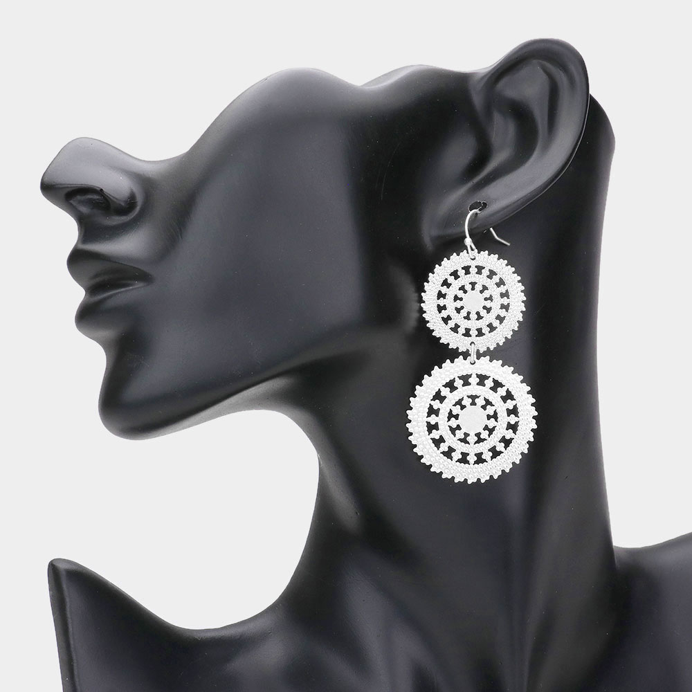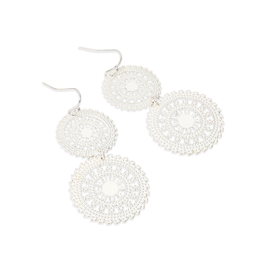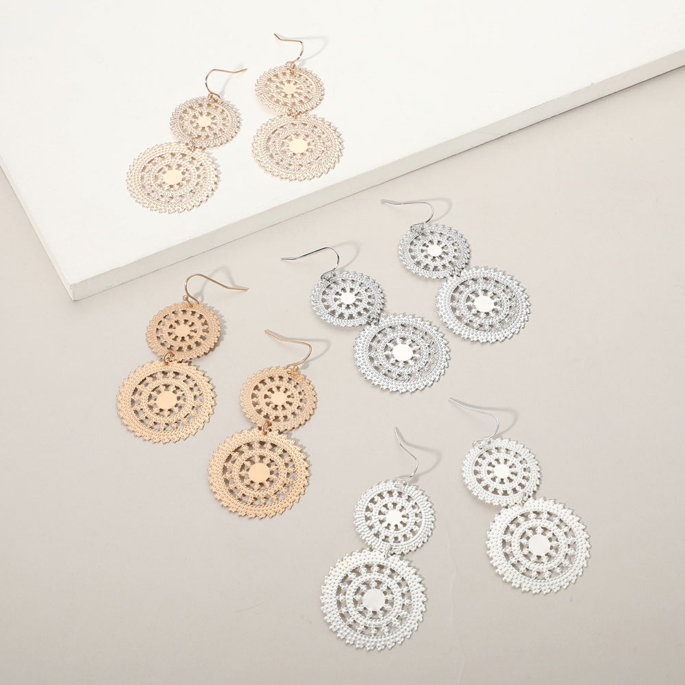 Triple Round Brass Metal Filigree Link Dropdown Dangle Earrings