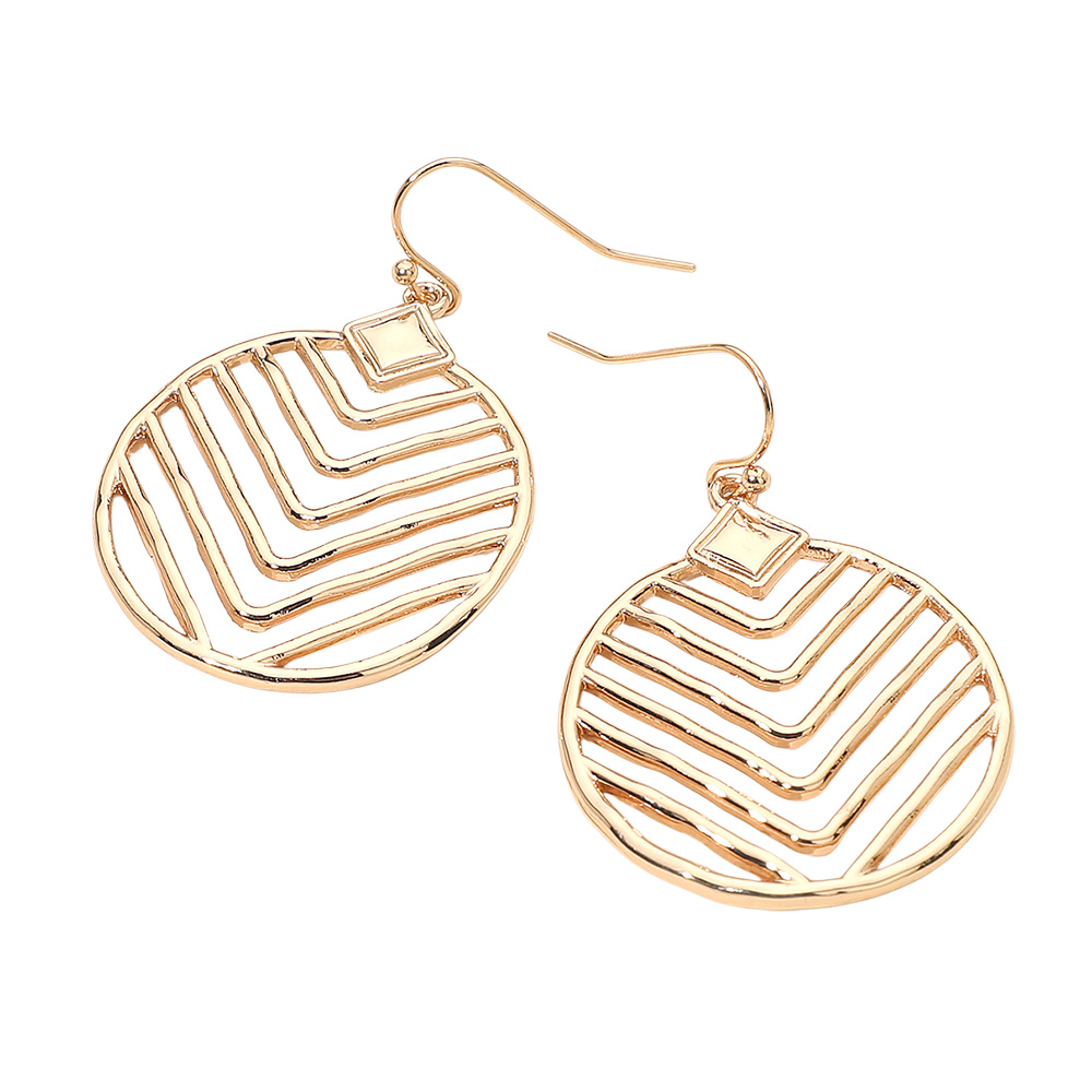 Details • Size : 1.2" X 1.8" • Fish Hook Back • Sleek round drops with layered line detailing for a bold yet refined look. Lightweight and eye-catching, these modern earrings move beautifully with every step, perfect for everyday style, office wear, date nights, and special occasions. • Lead and Nickel Compliant