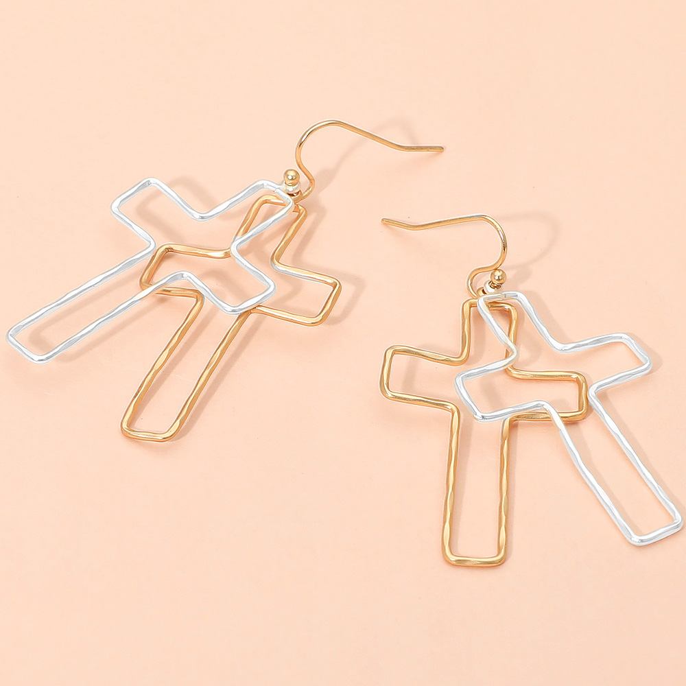 • Express your bold style with these double cross wire drop earrings. Featuring an open geometric silhouette with layered crosses, they bring a modern, artistic flair to any outfit. Lightweight and eye-catching, they make a perfect accessory for both day and night looks.