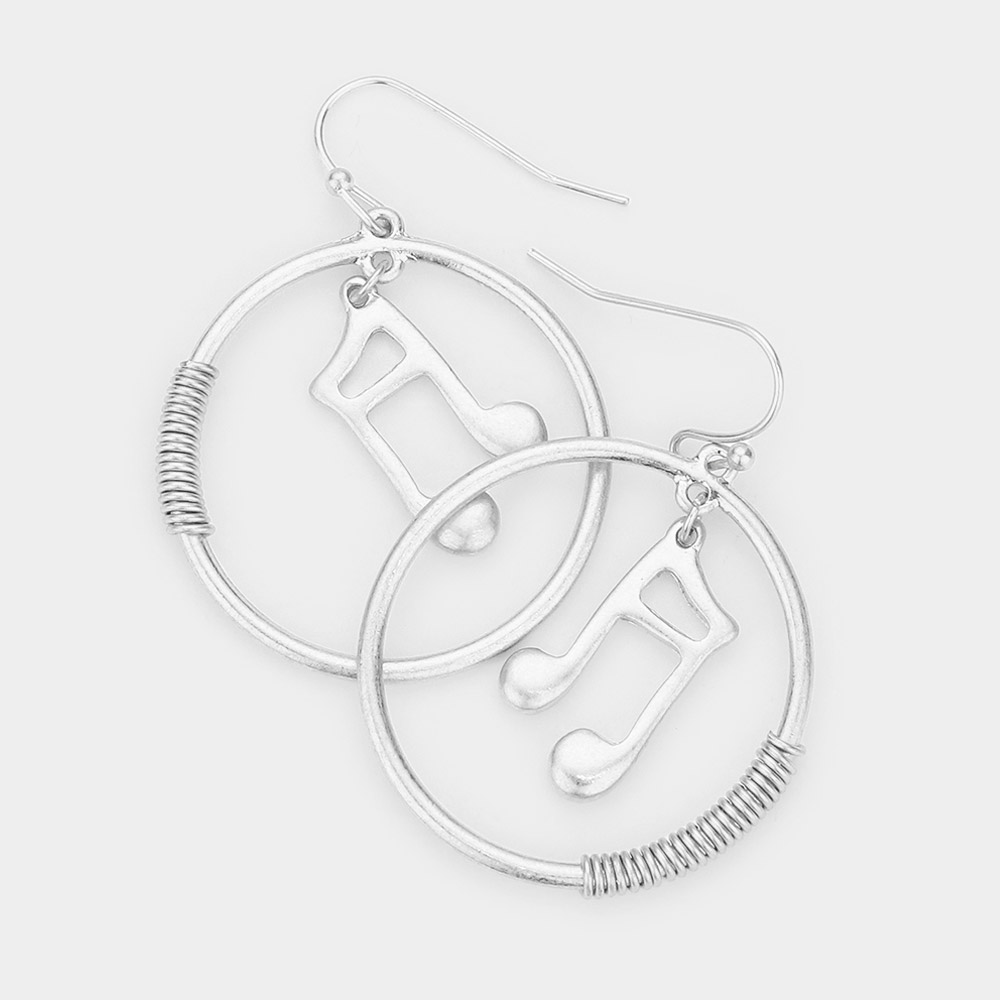 Music Notes Accented Wire Wrapped Open Metal Circle Dangle Earrings