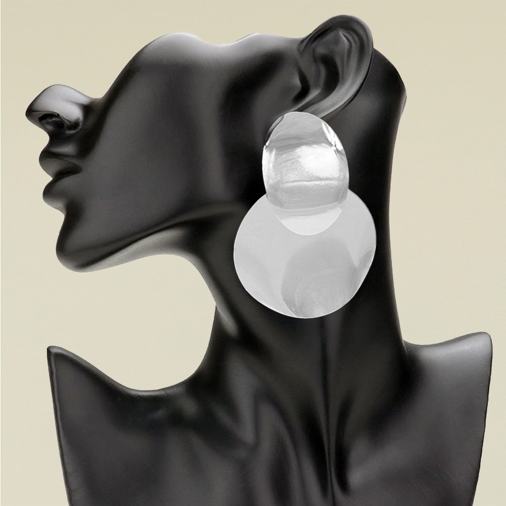 Details • Size : 2.4" X 3.4" • Post Back • Elegant layered oval drop earrings featuring a smooth dual-shape design with a modern artistic touch. Lightweight and stylish, these statement earrings add a sophisticated accent to both casual and dressy looks, perfect for any occasion. • Lead and Nickel Compliant