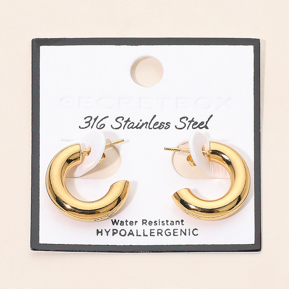 SECRET BOX_Stainless Steel Think Hoop Earrings