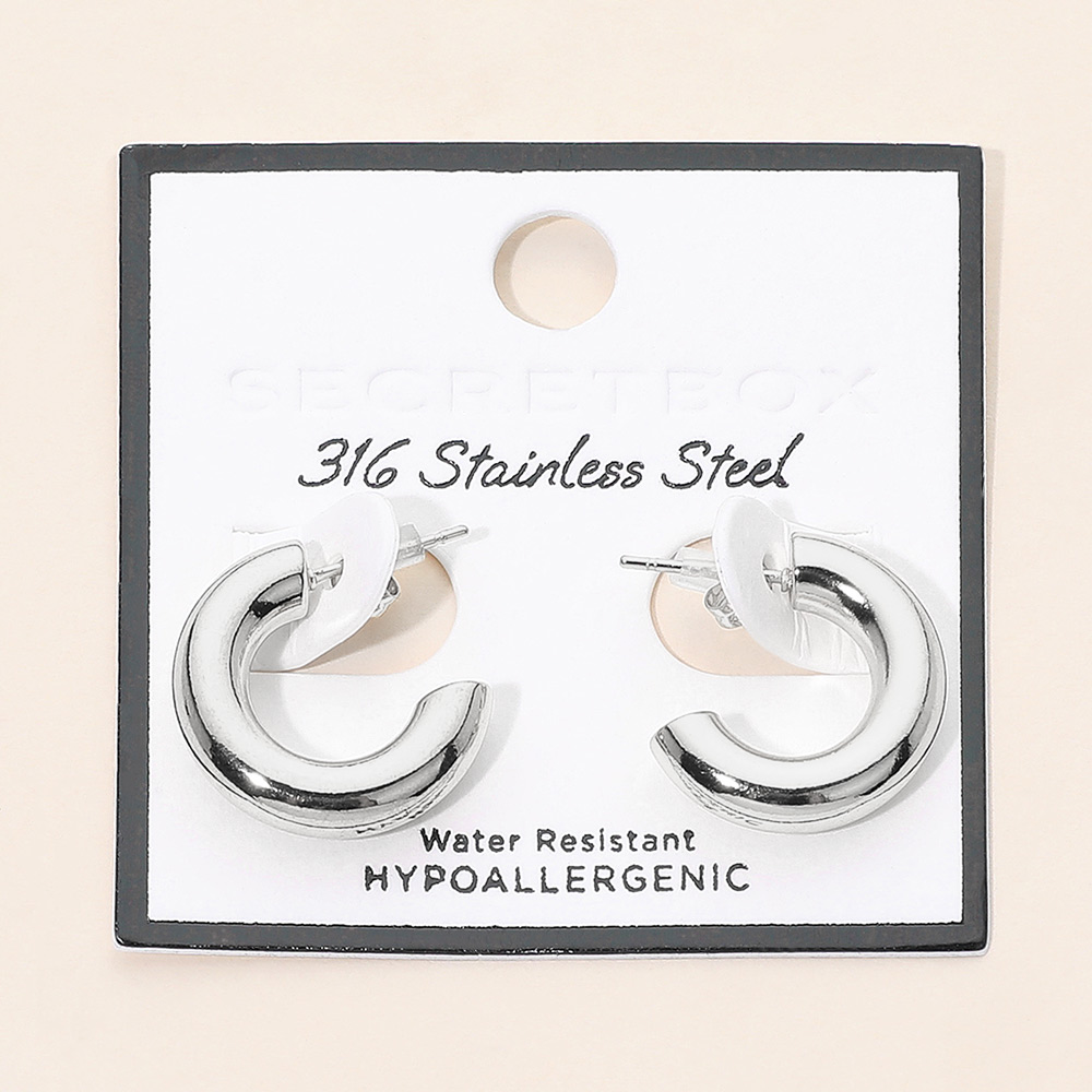 Details • Size : 0.8" X 0.8" X 0.2" • Post Back • Water Resistant • Bold yet refined stainless steel hoops designed to deliver a clean statement look with everyday comfort. Their smooth, rounded silhouette adds instant polish to casual outfits or evening styling, layering easily with other jewelry for a versatile, timeless accessory choice. • Hypoallergenic • Stainless Steel