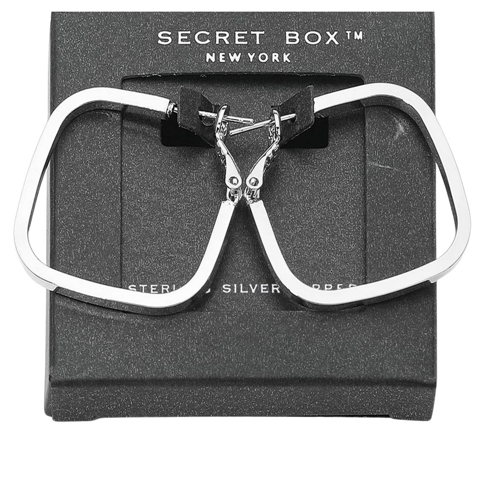 Details • Size : 1.25" X 1.25" • Omega Back • Make a bold statement with these modern geometric hoop earrings featuring a sleek square design. Lightweight yet eye-catching, they add a contemporary touch to both casual and dressy looks. Perfect for fashion-forward styling and everyday elegance. • Sterling Silver Dipped