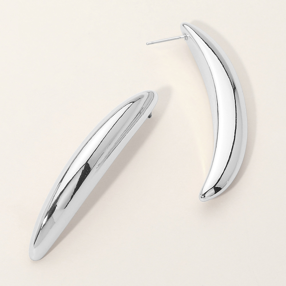Silver Dipped Curved Minimalist Bar Statement Earrings Silver Dipped Curved Minimalist Bar Statement Earrings