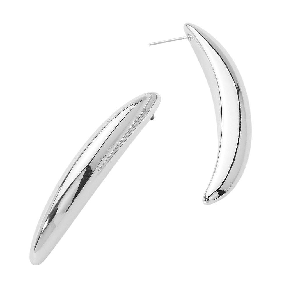 Silver Dipped Curved Minimalist Bar Statement Earrings