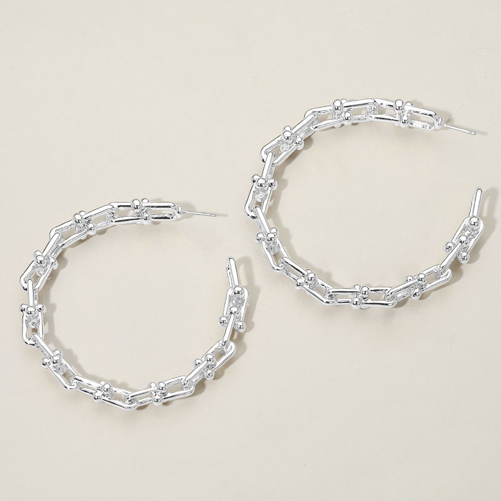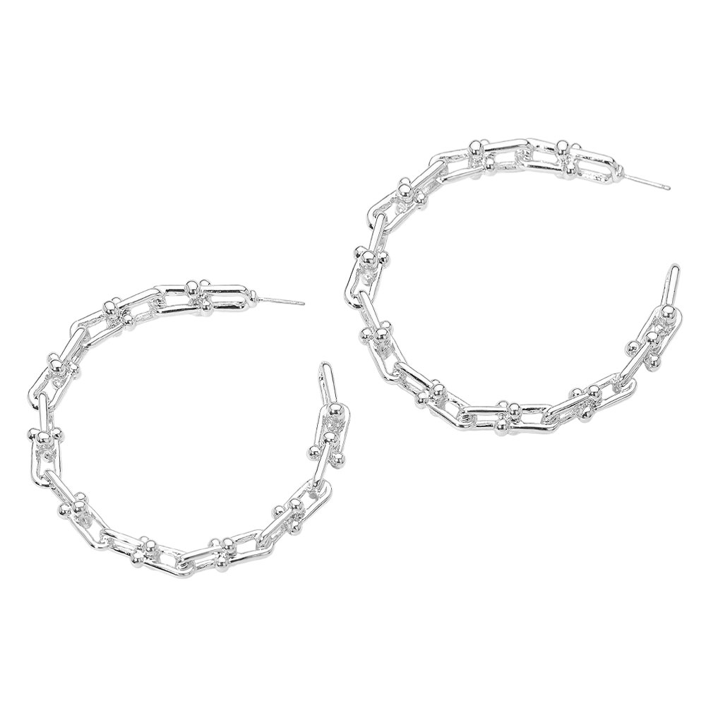 • Elevate your jewelry collection with textured chain hoop earrings designed with bold linked detailing. Their unique structure adds a modern edge to everyday style, making them a standout accessory for both casual and dressy looks. Lightweight and eye-catching, they create effortless statement appeal.