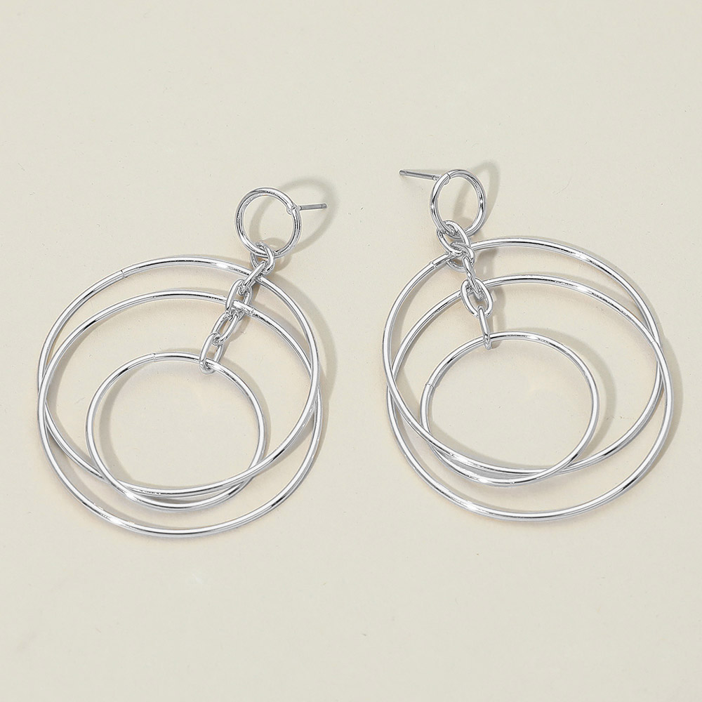 • Sleek layered circle drop earrings featuring multiple open rings for fluid movement and modern dimension. Designed to create an eye-catching silhouette, this statement style elevates everyday outfits while remaining versatile enough for workwear, events, or polished casual looks.