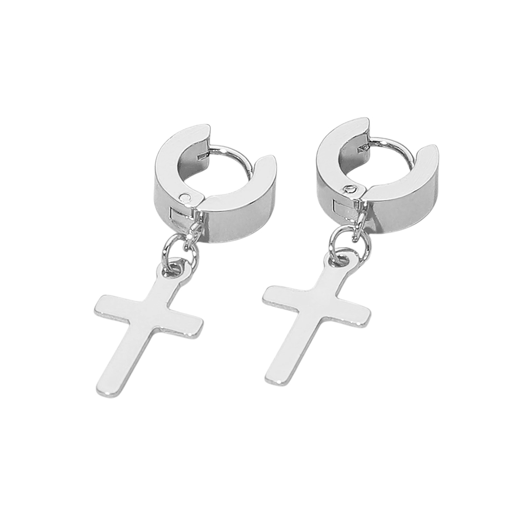 Stainless Steel Cross Charm Dangle Mini Huggie Hoop Earrings