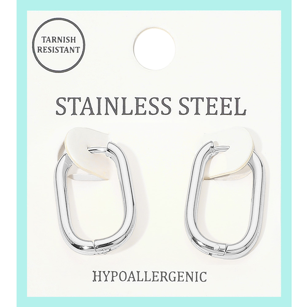 Details • Size : 0.6" X 0.8" • Huggie Back • Tarnish Resistant • These geometric hoop earrings feature a sleek, modern silhouette that adds a stylish edge to any look. Designed for comfort and versatility, they are perfect for elevating both casual and dressy outfits, making them a timeless accessory for everyday fashion. • Hypoallergenic • Stainless Steel