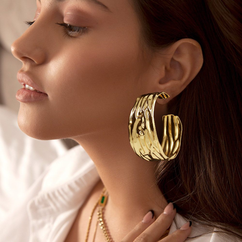 12PCS - Sculpted Curved Metal Plate Accent Stretch Hairbands