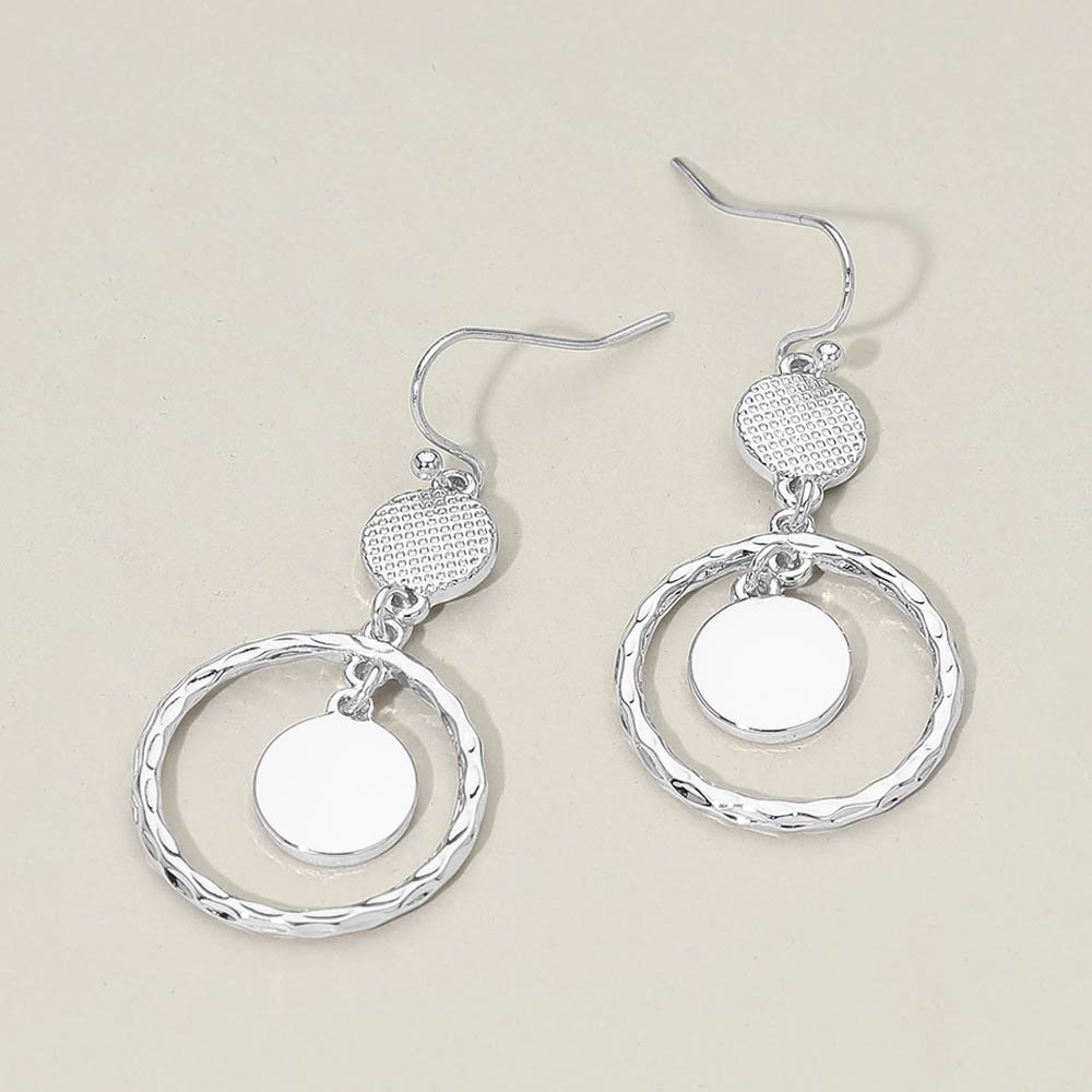 • Elevate everyday style with these textured hoop disc drop earrings. Featuring a circular open hoop paired with a smooth hanging disc and a subtle textured top accent, this design adds depth and gentle movement. Lightweight and comfortable, they transition easily from casual wear to work and evening looks. A versatile accessory that complements modern, minimalist, and seasonal collections while offering timeless appeal and effortless styling.